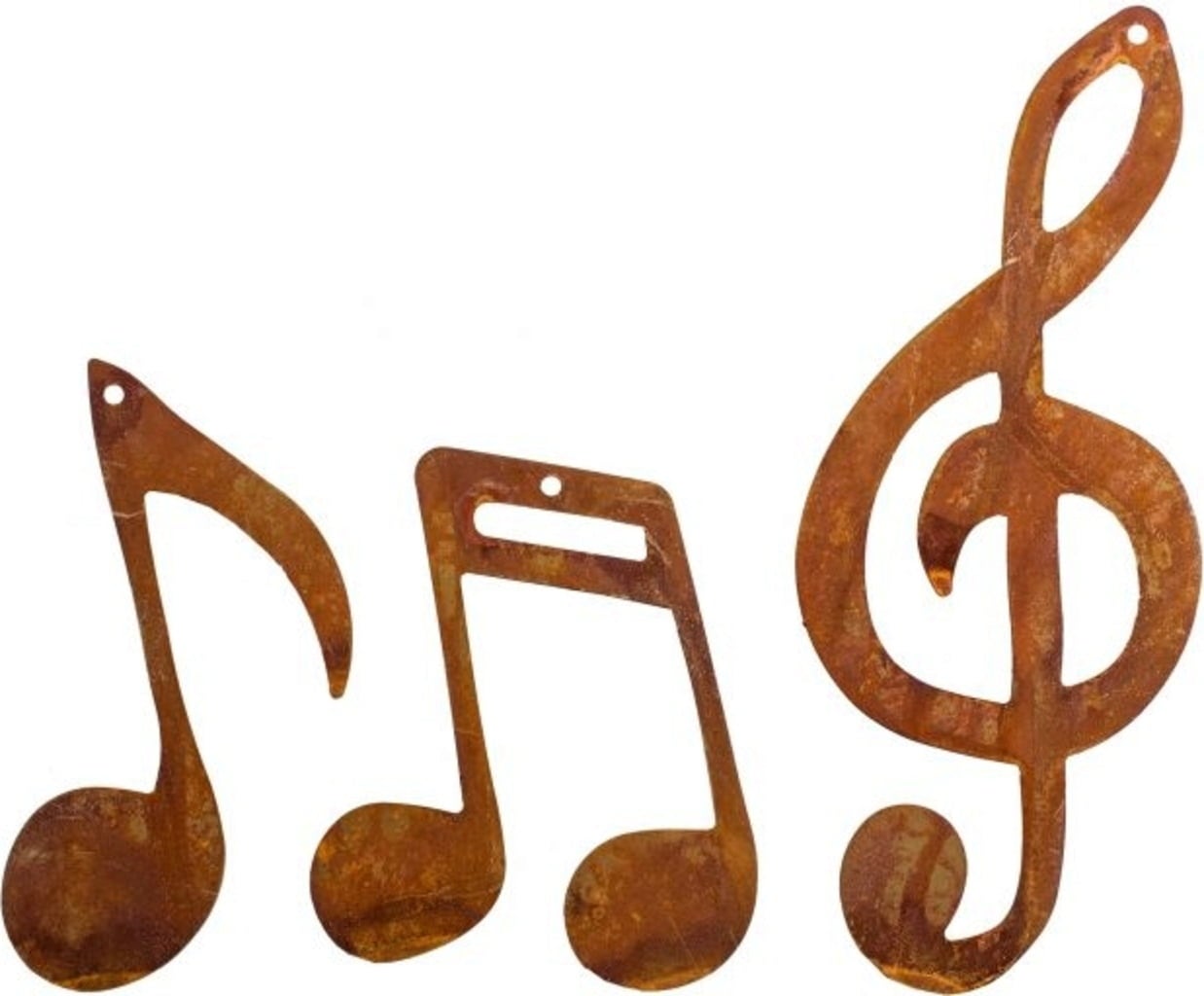 Ez a varázslatos dekoráció nem csak a zenerajongók szívét dobogtatja meg. A művészi design és a nemes rozsda megjelenés teszi ezt a háromrészes szettet a kert, terasz és erkély különleges díszévé, amely jellegzetes akcentust kölcsönöz.