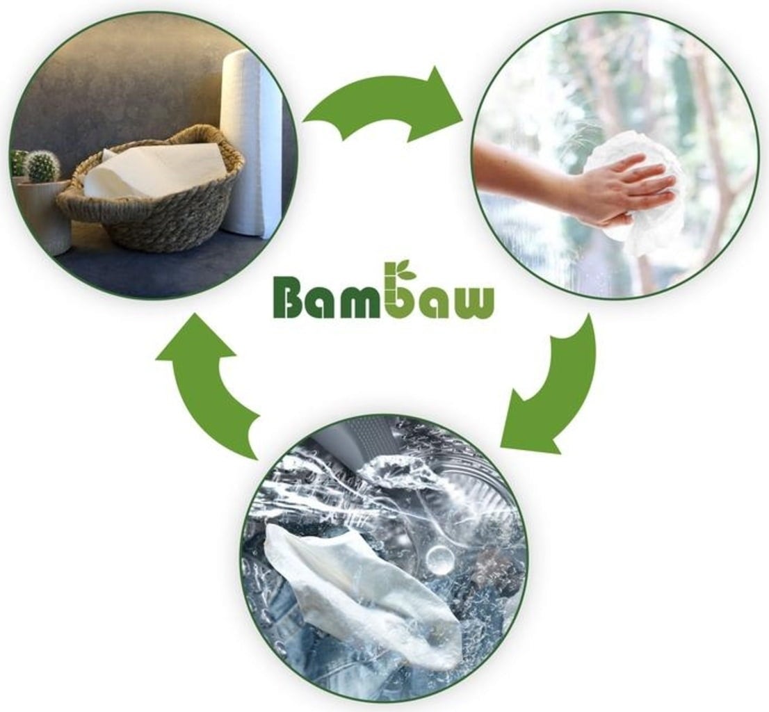 Egy tekercs 20 lapos bambusz konyhai tekercs 65 eldobható konyhai tekercset helyettesít. A bambusz konyhai tekercs sokkal nedvszívóbb, mint a hagyományos, alaposan és könnyedén tisztítja a felületeket. A konyharuhák 20% poliészterből és 80% bambuszból készülnek, nagyon robusztusak, egyszerűen moshatóak és újrafelhasználhatóak.