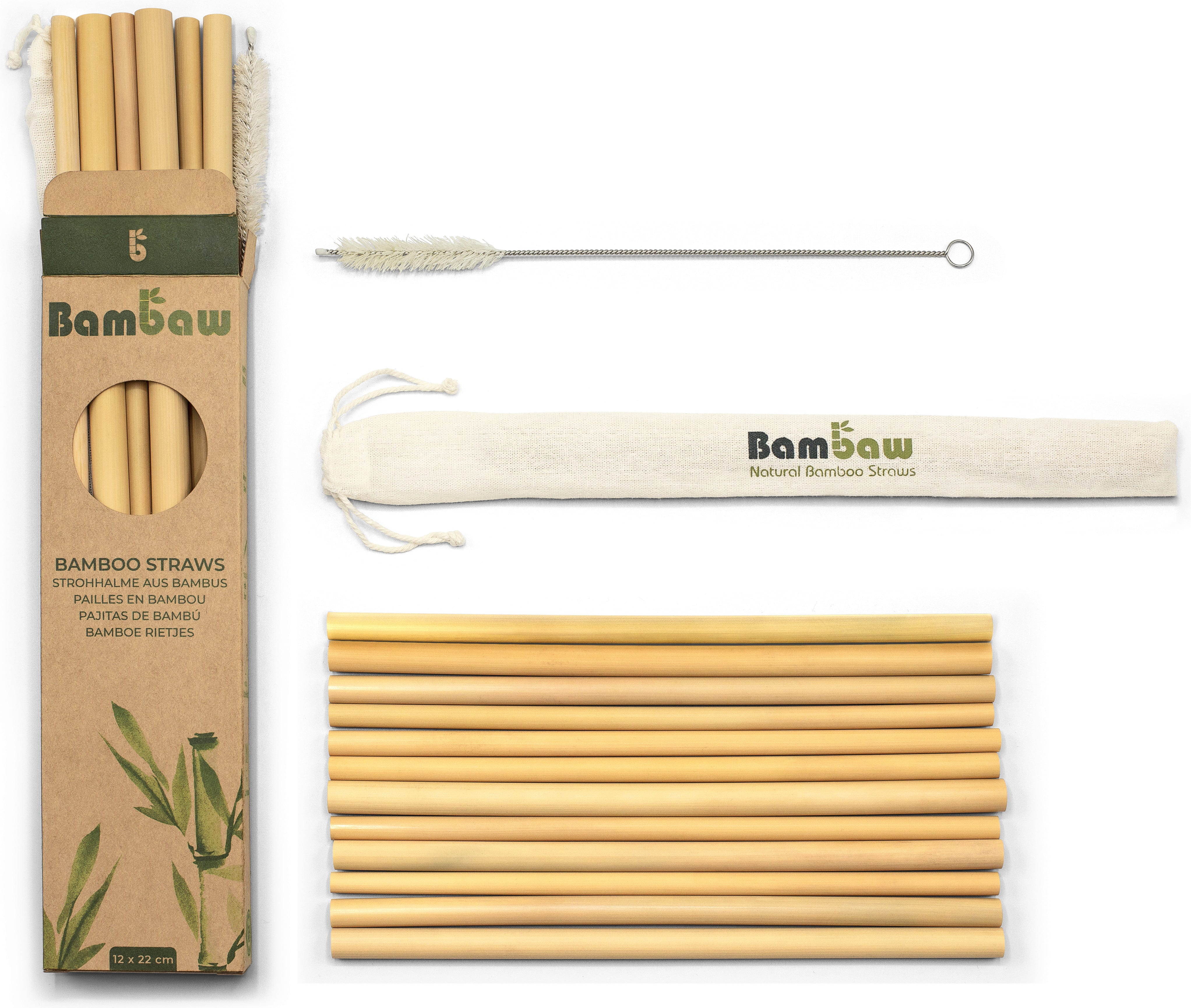 Ez a készlet kézzel készített bambusz szívószálakat tartalmaz. Olajosak és rendkívül ellenállóak. Használat után könnyen tisztíthatóak a mellékelt kefével és / vagy a mosogatógépben. Teljesen természetes és biológiailag lebomló.
