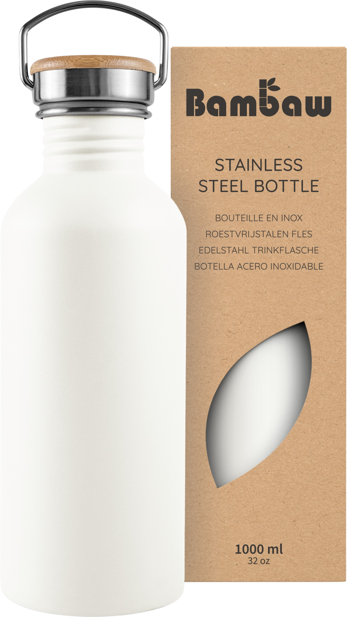 Bambaw Rozsdamentes acél palack, 1000 ml, Polar White