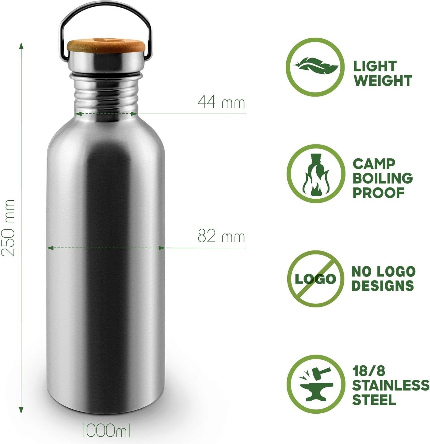Ez a palack tökéletes társ a mindennapokban - akár sportoláshoz, az irodában, iskolában vagy túrázáshoz! Rozsdamentes acélból készült, valamint szivárgásmentes csavaros bambuszkupakkal és időtlen, letisztult dizájnnal rendelkezik. A palack mentes a káros vegyi anyagoktól, és használat után egyszerűen megtisztítható egy palackkefével.