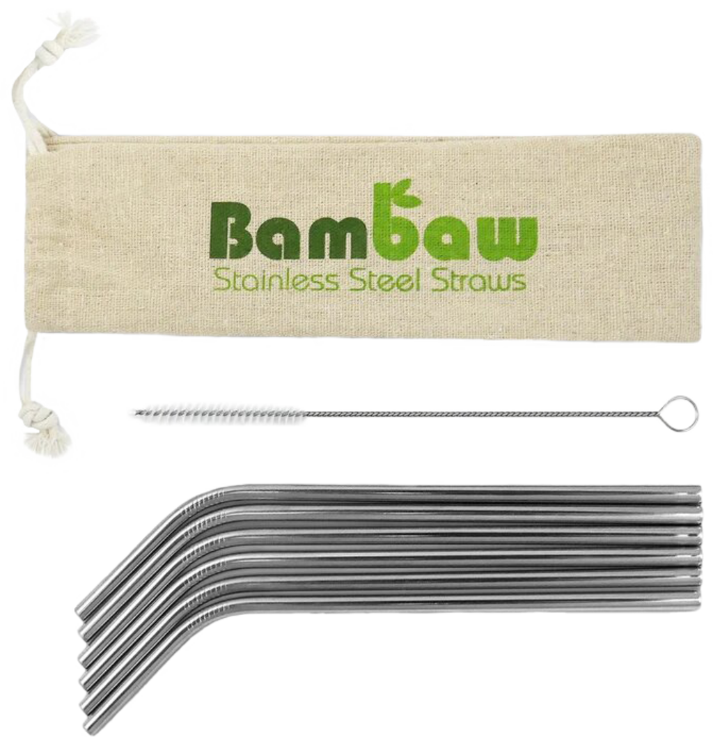 Ezek a Bambaw rozsdamentes acélból készült szívószálak tökéletes társak a következő partira vagy egy piknikre a parkban. Ívelt formájúak, ellenállóak és tartósak. Használat utána mellékelt kefével vagy a mosogatógépben könnyen megtisztíthatóak.