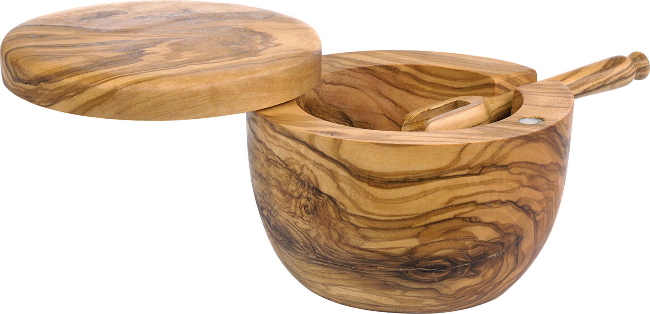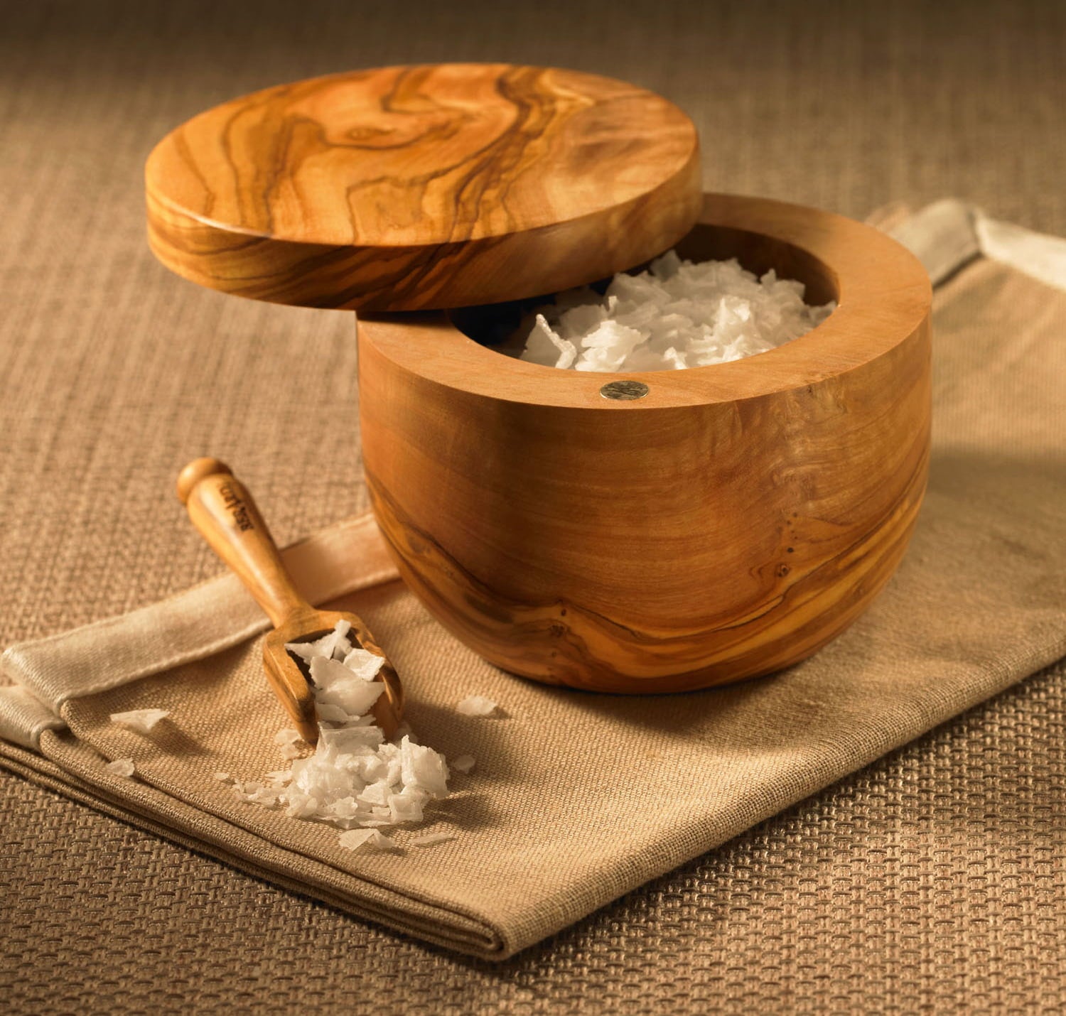 Feltűnően szépen kidolgozott tárolóedény az aromás ételek legfontosabb összetevőjéhez: a legjobb só! Az olajfából készült kerek tartó, a fedélnek köszönhetően megvédi az értékes tartalmat a nedvességtől és a portól. Egy praktikus mérőkanál a készlet része, mely megkönnyíti az adagolást. Mint minden BÉRARD fatermék, ez az elegáns kialakítás is hagyományosan kézzel készült. A természetes famintának és színnek köszönhetően minden tartó egyedi.