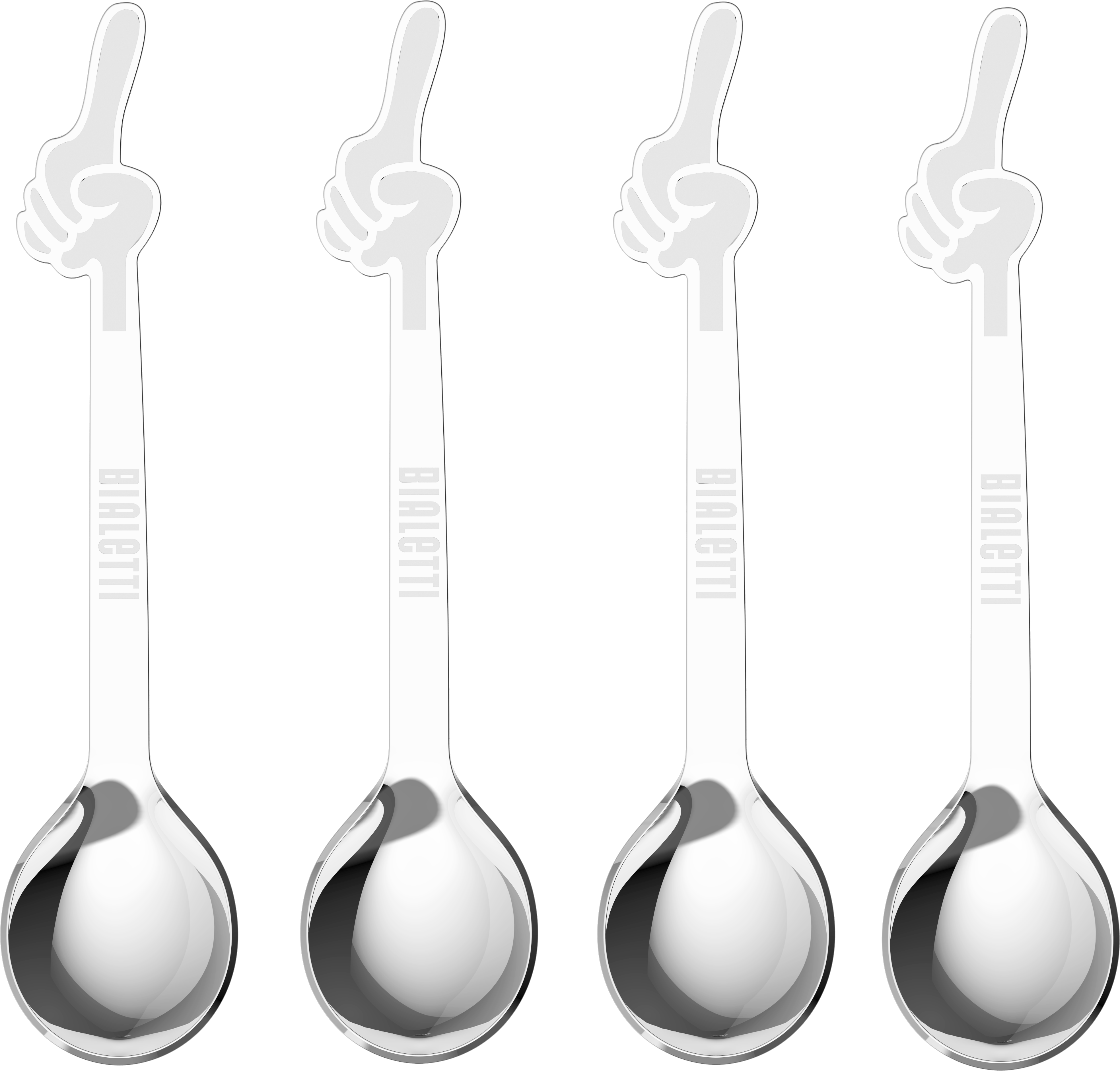 Az extravagáns design találkozik a Bialetti hagyományaival. Ez a 4 db-os espresso kanál szett a Bialetti-figura híres mutatóujjával nemcsak nagyszerű ajándékötlet, hanem az evőeszköztartó fiók abszolút különlegessége is.