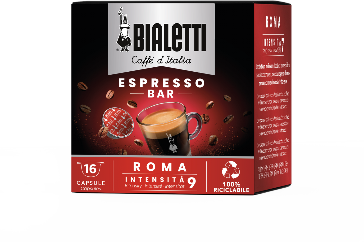 Róma, az Örök Város, mely szépségéről és a római konyha hagyományairól híres. A Bialetti Roma kapszulákkal közvetlenül a csészéjébe vihet egy darabot ebből a kulináris kultúrából. Élvezze az espressot, amely gazdag kakaójegyekkel és aszalt gyümölcsök harmonikus keverékével kápráztat el – tökéletes lezárása bármilyen étkezésnek.