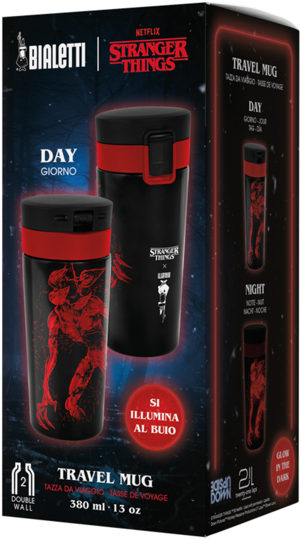 Az exkluzív, "Stranger Things" stílusú 3D grafikák teszik ezt a praktikus utazóbögrét tökéletes társsá a nap folyamán.