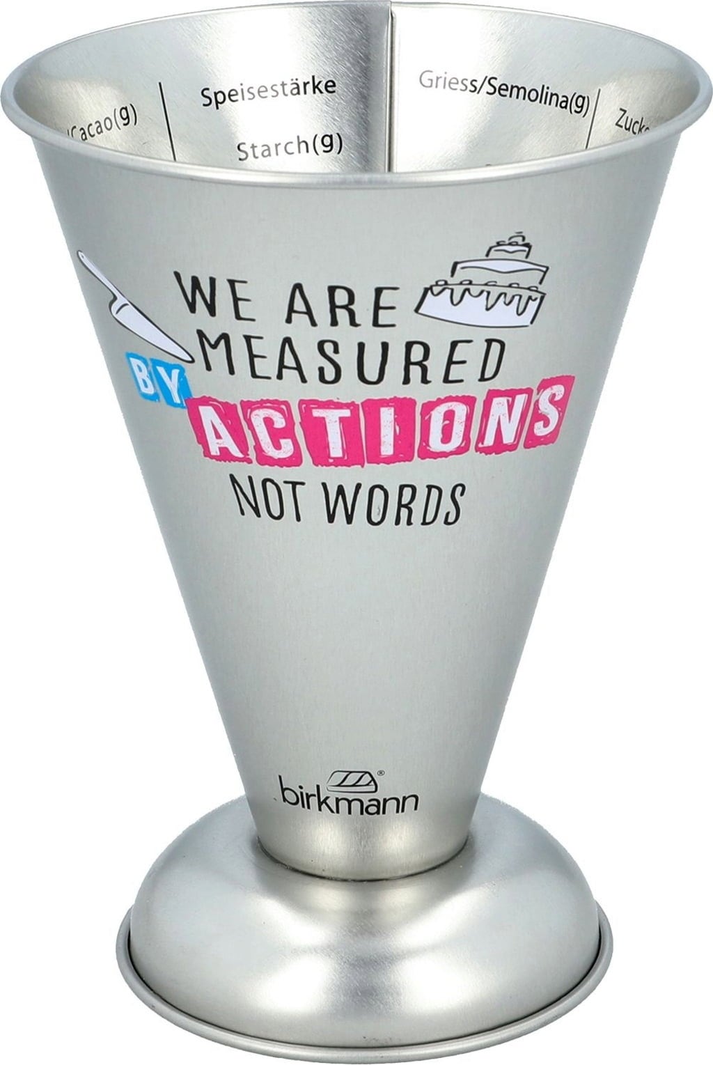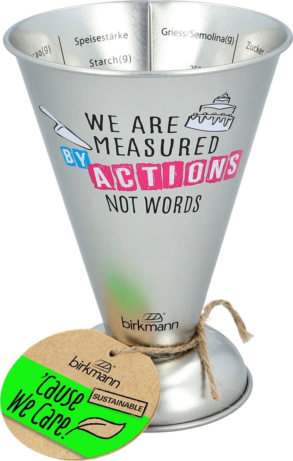 Egy mindenhez! Az újrahasznosított bádoglemezből készült mérőpohár nem csak folyadékokhoz 250 ml-ig, hanem számos egyéb összetevő mérésére is alkalmas. Nélkülözhetetlen segítőtárs a konyhában és a pékségben.