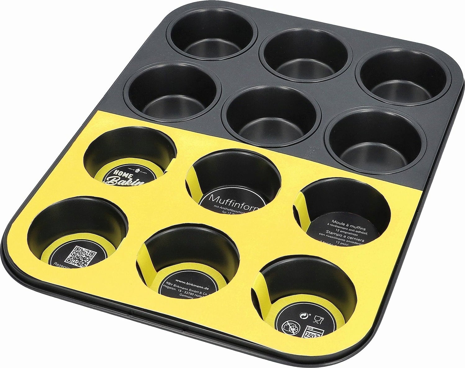 Tökéletes muffinok pillanatok alatt! A Birkmann Home Baking kollekció kiváló minőségű, modern fekete színű sütőformái finom eredményeket garantálnak. A szénacél biztosítja az ideális hővezetést, a prémium tapadásmentes bevonat pedig a tészta könnyű kivételét.