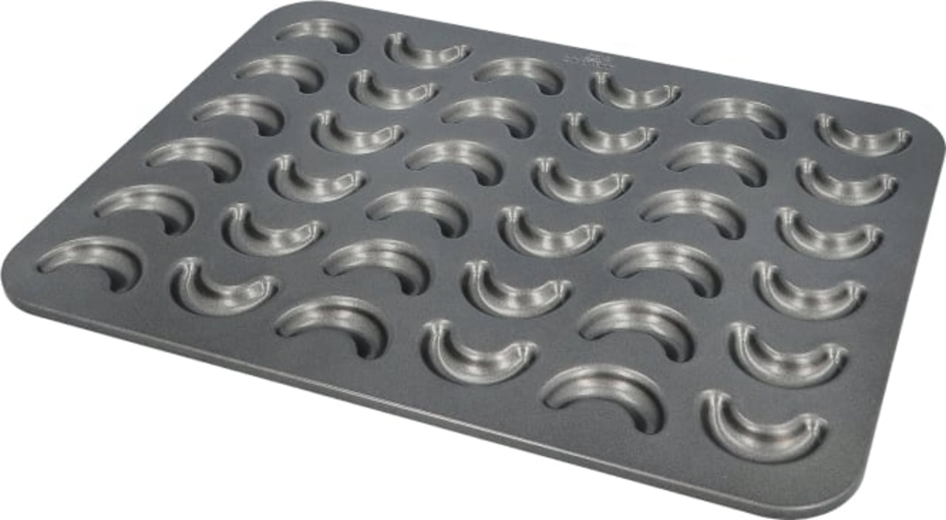 Ezzel a kiváló minőségű vaníliás kifli sütőlappal akár 36 tökéletes kiflit is süthet pillanatok alatt! Az első osztályú tapadásmentes bevonat biztosítja, hogy a sütik könnyedén kiszedhetők legyenek – anélkül, hogy leragadnának vagy eltörnének.
