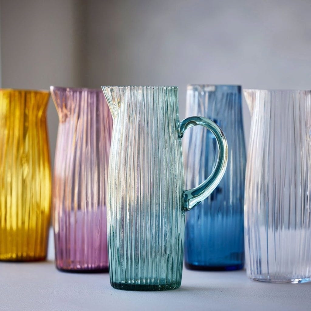 A gyönyörűen kidolgozott, bordázott megjelenésű kancsó időtlen eleganciájával és nagyszerű színeivel nyűgöz le. Tökéletes vízhez, gyümölcsléhez vagy házi készítésű limonádéhoz.