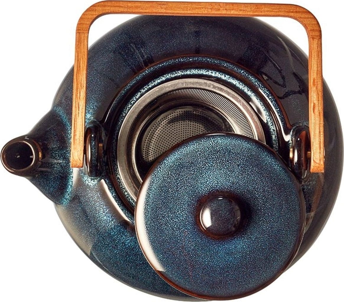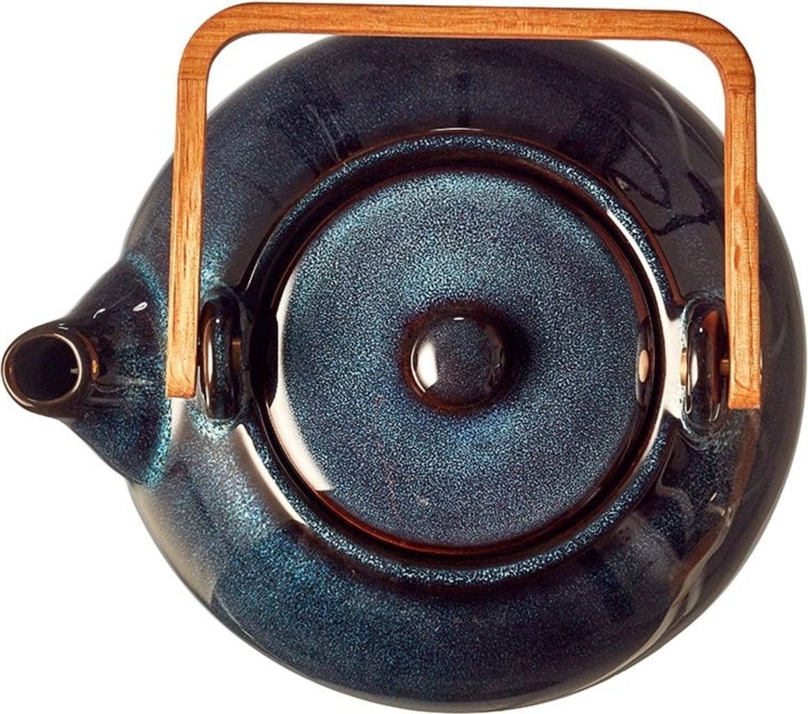 A kézzel készített, öblös teáskanna nemcsak egyedi effektmázával és nagyszerű színeivel nyűgöz le, hanem praktikus szempontból is: a beépített teaszűrő egyszerűen és könnyen kivehető.
