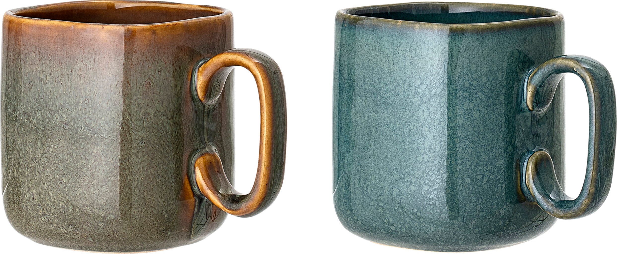 Két mesés bögre egy szettben, melyek a színpaletta legszebb árnyalatait tükrözik. Az egyik csésze barna, narancssárga és arany pigmenteket tartalmaz, a másik kék, zöld és elefántcsont színűt. Az égetett agyagedények igazán harmonikus párosa - annyira különbözőek és mégis hasonlóak!