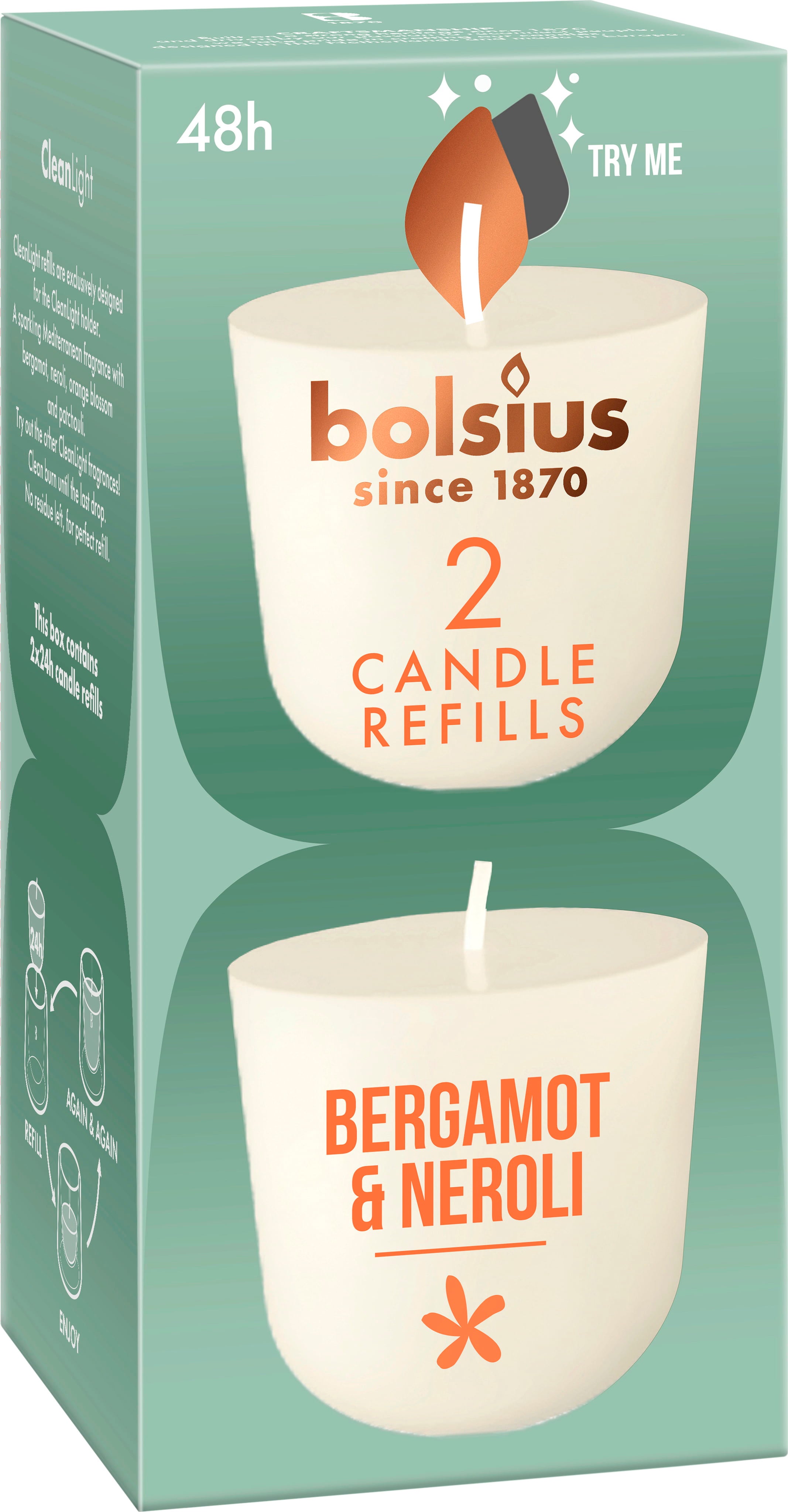 bolsius CleanLight ScentMax utántöltő gyertyák, 2 db-os csomag, Bergamott és neroli
