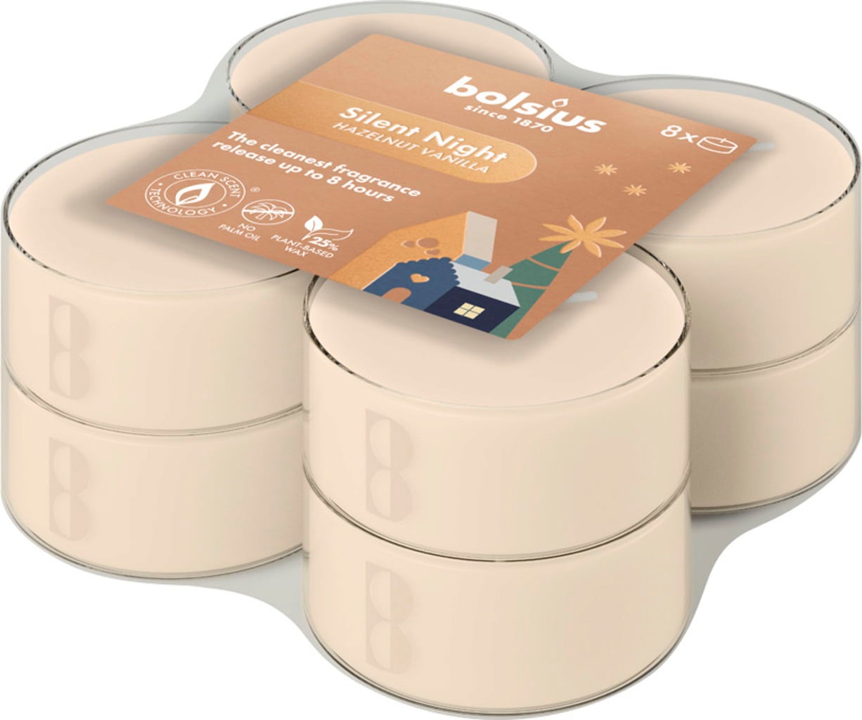bolsius True Glow illatos mécsesek Csendes Éj, Maxi teamécses 8 óra / 8 db-os csomag