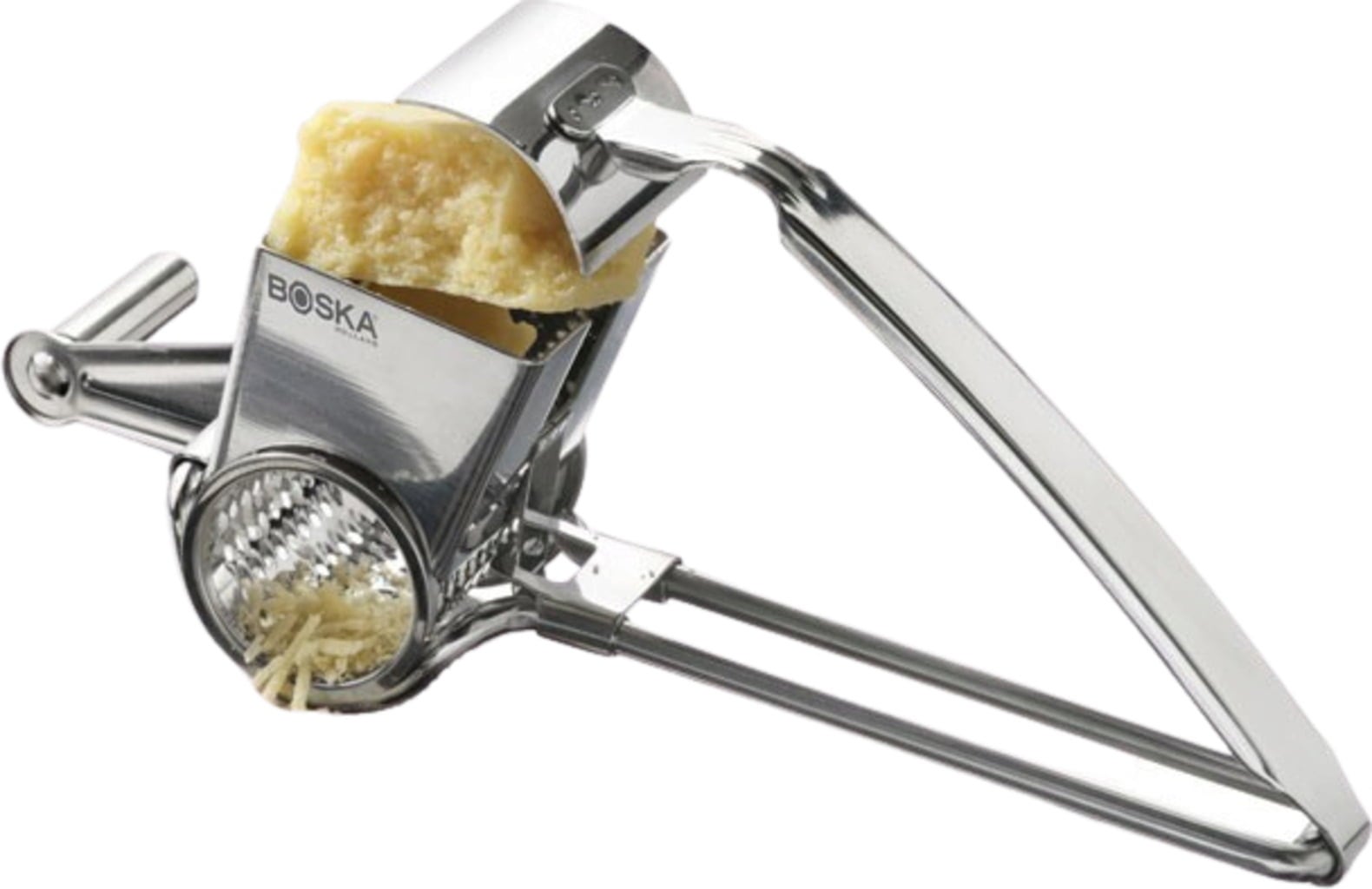 Ez a sajtreszelő a profik konyhájából származik, valamint még az igényes amatőr szakácsok követelményeinek is megfelel. Egyik kezével egyszerűen nyomja át a sajtot a reszelőn, míg a másik kezével forgassa a reszelőt. A félkeménytől a nagyon keményig még soha nem volt ilyen egyszerű a sajtok lereszelése, biztonságos és kényelmes, amely minden bizonnyal egy nélkülözhetetlen kiegészítő lesz a konyhájában.