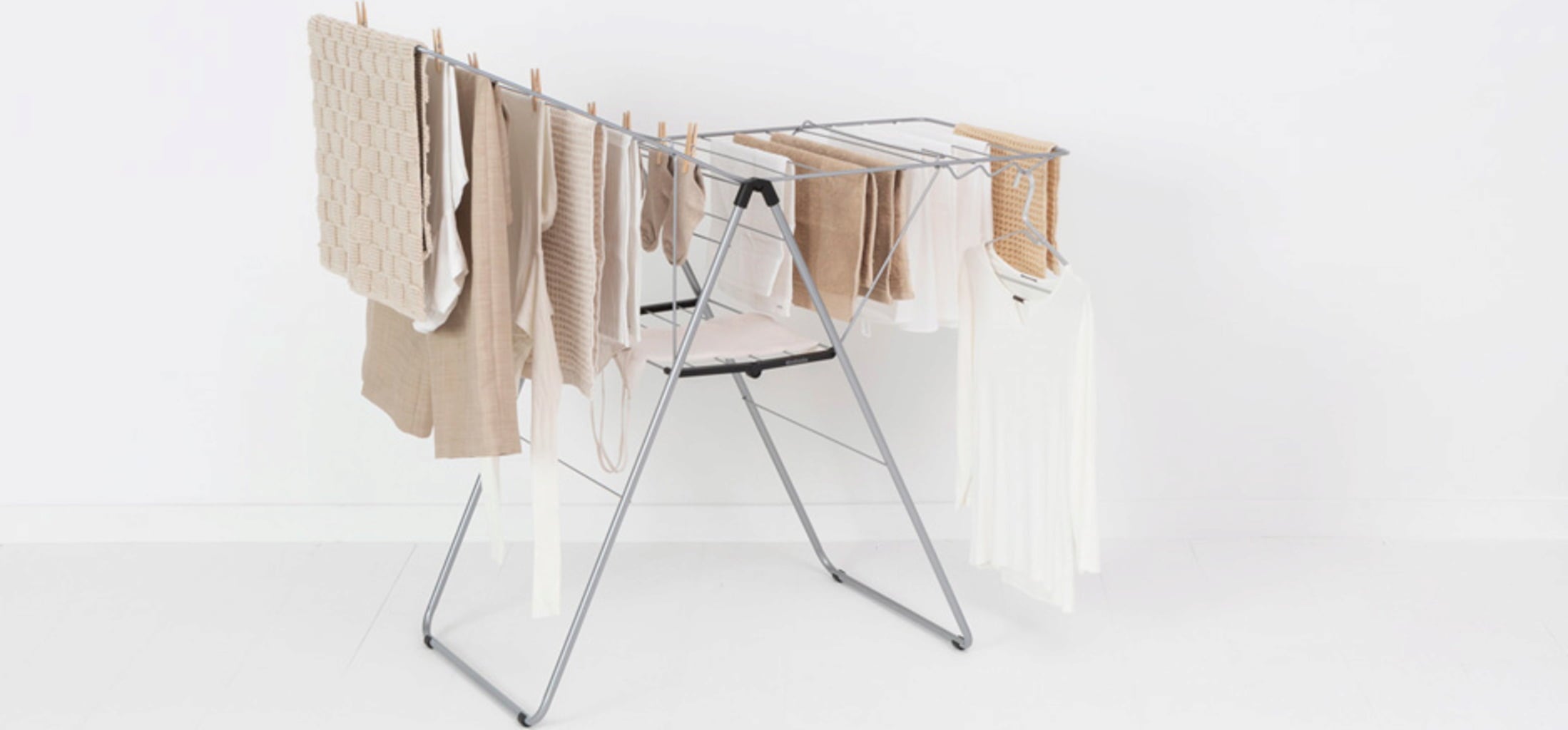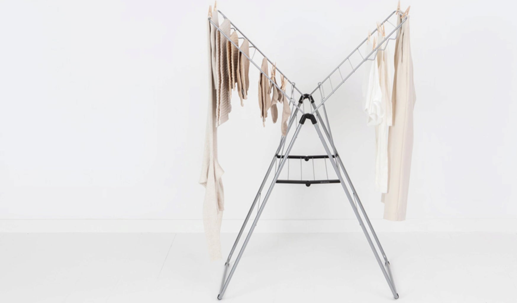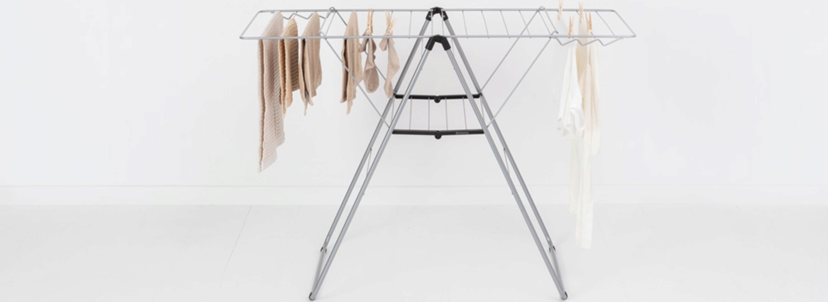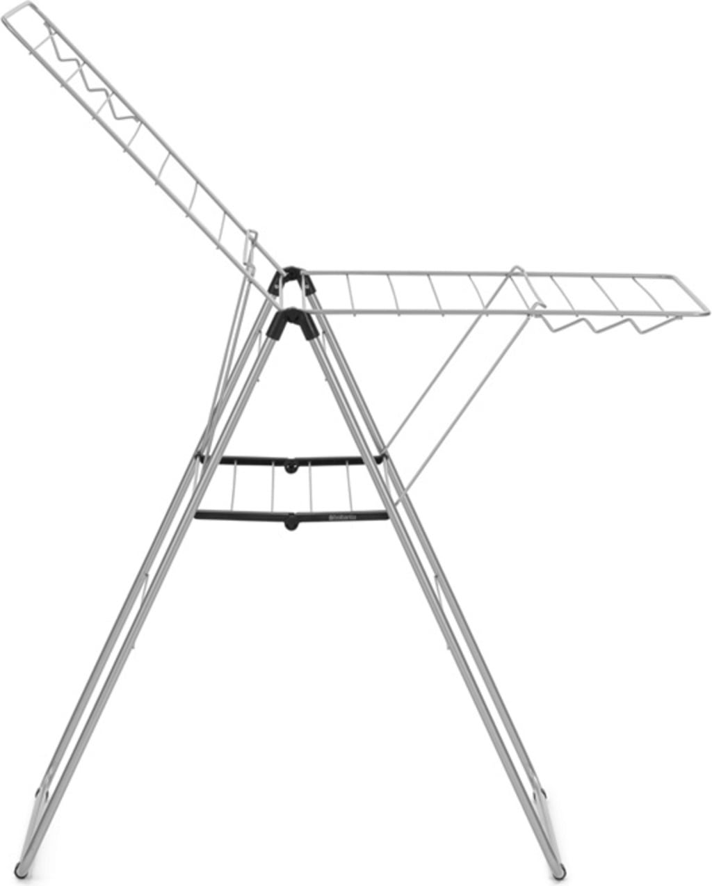 Különösen praktikus: A háromszög alakú keretkialakításnak köszönhetően a szárnyak egyenként is kihajthatók, vagy különböző magasságokban használhatók anélkül, hogy a ruhaszárító állvány felborulna.
