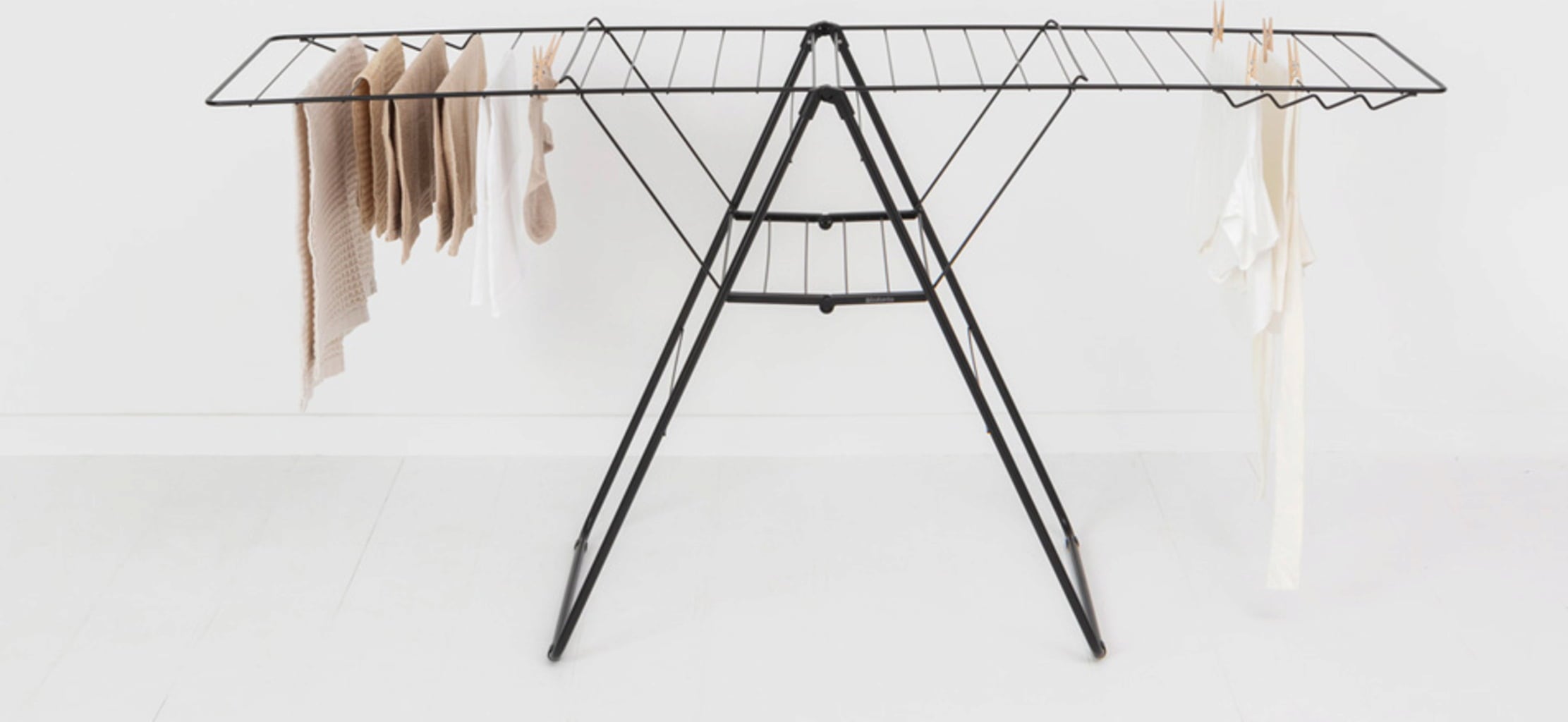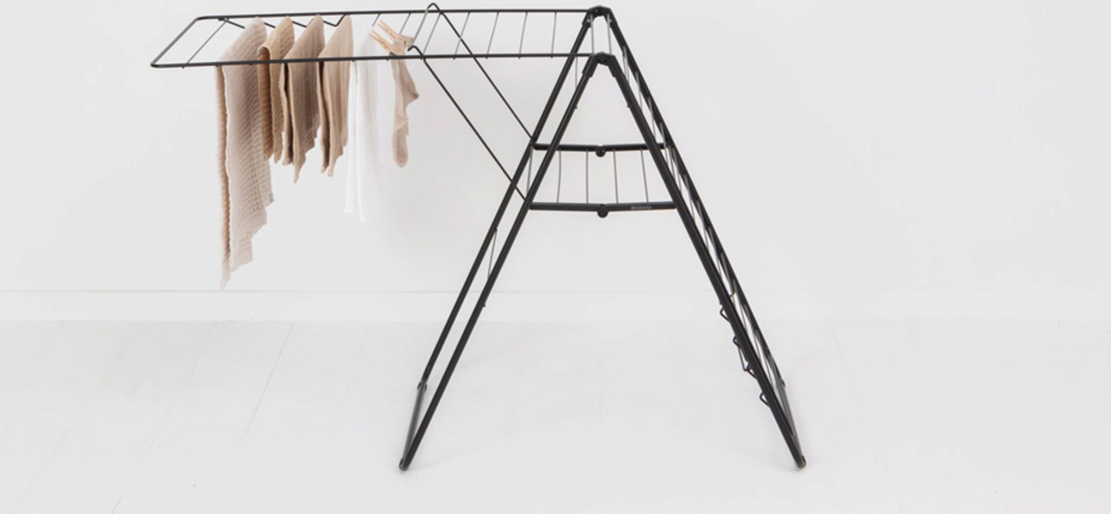 Különösen praktikus: A háromszög alakú keretkialakításnak köszönhetően a szárnyak egyenként is kihajthatók, vagy különböző magasságokban használhatók anélkül, hogy a ruhaszárító állvány felborulna.