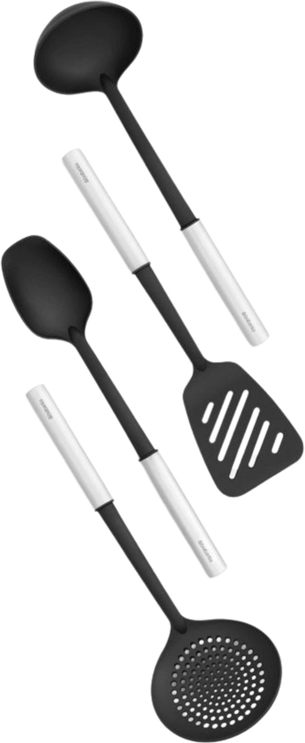 Ideális konyhai eszközök készlet: leveses merőkanál, zöldségkanál, serpenyőlapát és szűrőkanál - forgatáshoz, adagoláshoz, meréshez és tálaláshoz. Így hirtelen minden megtalálható a konyhájában, amire szüksége van – egy igazi szakácsnak!