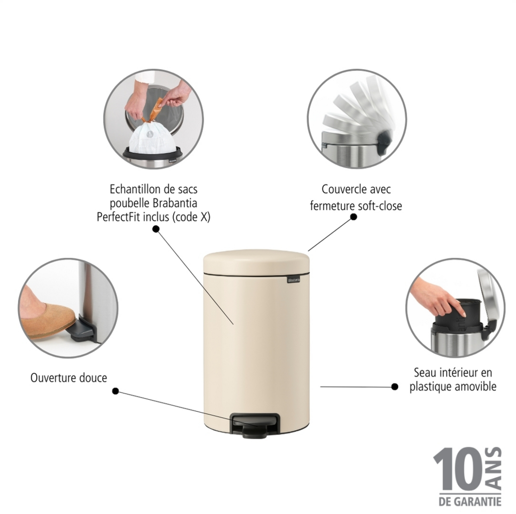 Brabantia Newicon Lábbal nyitható szemetes műanyag betéttel - 12l, Soft Beige