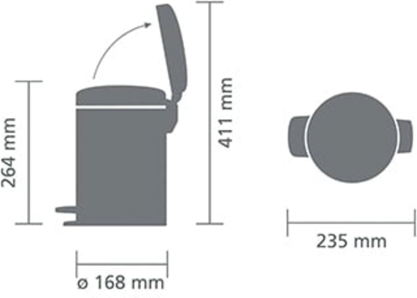 Brabantia Newicon Lábbal nyitható szemetes műanyag betéttel - 3l, Confident Grey