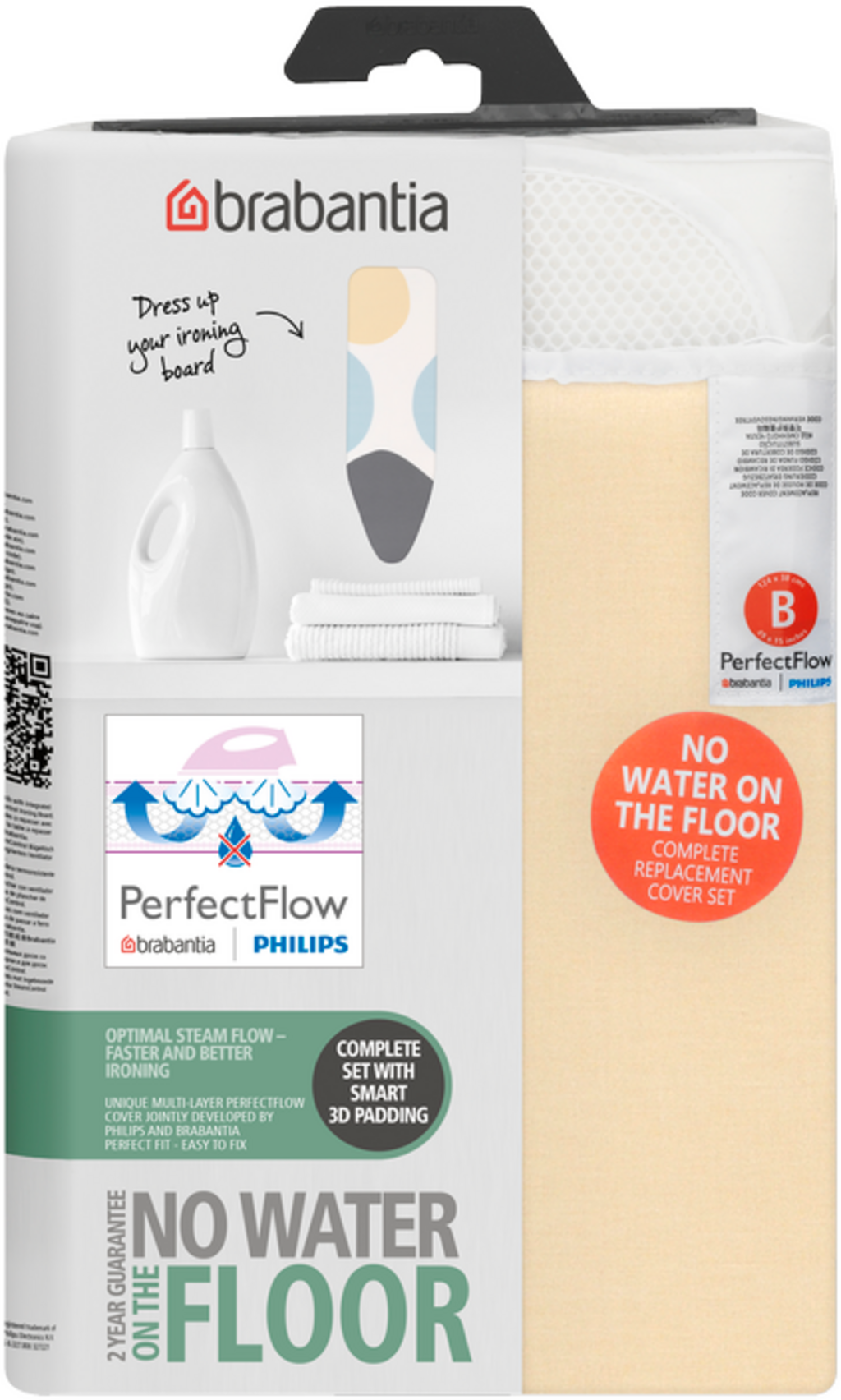 Optimalizálja vasalási élményét az all-in-one Perfect Flow vasalódeszka-huzattal, és hozza ki a legtöbbet gőzölős vasalójából. Az innovatív háromrétegű anyagnak köszönhetően könnyebben simára vasalhatja a gyűrődéseket, a huzat pedig elnyeli a páralecsapódást is, így többé nem kerül víz a padlóra.