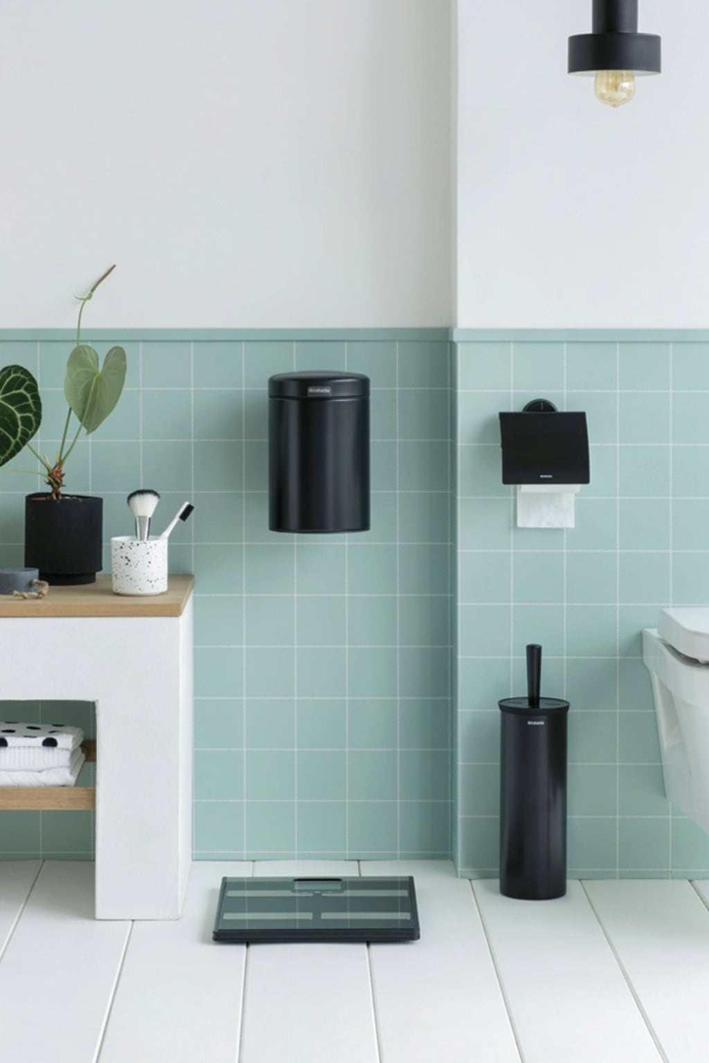 Ez a WC-kefe szett stílusos tisztaságot biztosít a WC-ben. A korrózióálló anyagból készült kefenyél rendkívül tartós, a kefefej robosztus műanyag sörtéi által alapos tisztítást biztosít az eldugott sarkokban is. A rejtett kefe diszkrét designt biztosít.