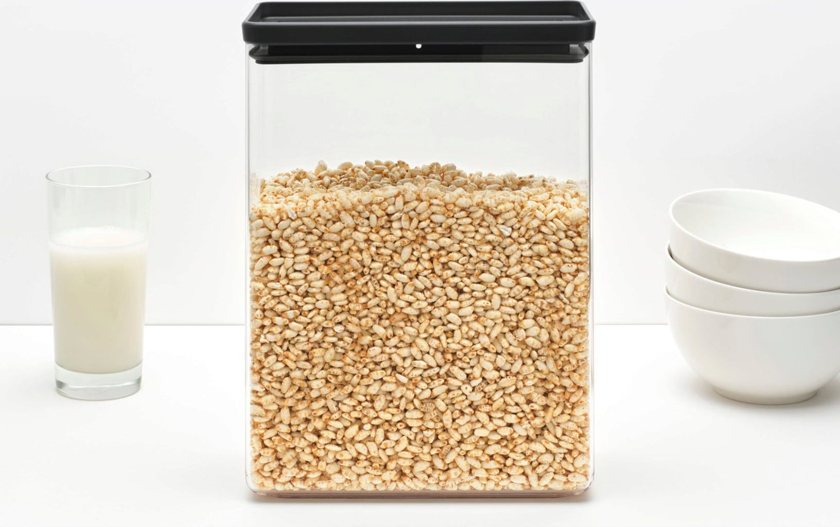 A Brabantia Tasty+ termékcsaládjának átlátszó műanyag tárolói rendet tartanak a konyhaszekrényben. A különböző méretű, helytakarékosan egymásra helyezhető dobozok megbízhatóan frissen tartják az élelmiszereket, és a tartalmuk egy pillantásra látható.
