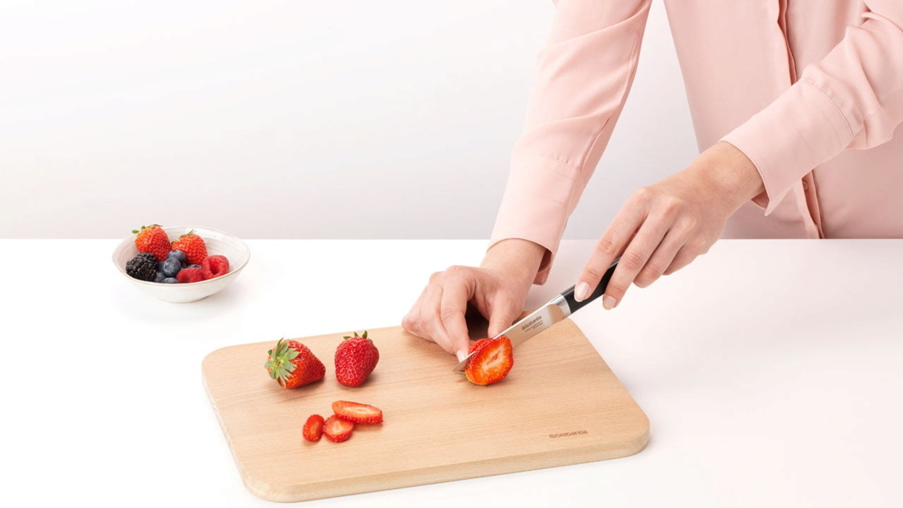 Lenyűgöző egyszerűségének és kiváló minőségű anyagainak köszönhetően ez a sokoldalú vágódeszka nagyon lenyűgöző. Tökéletes kockára vágáshoz, szeleteléshez, aprításhoz és tálaláshoz.