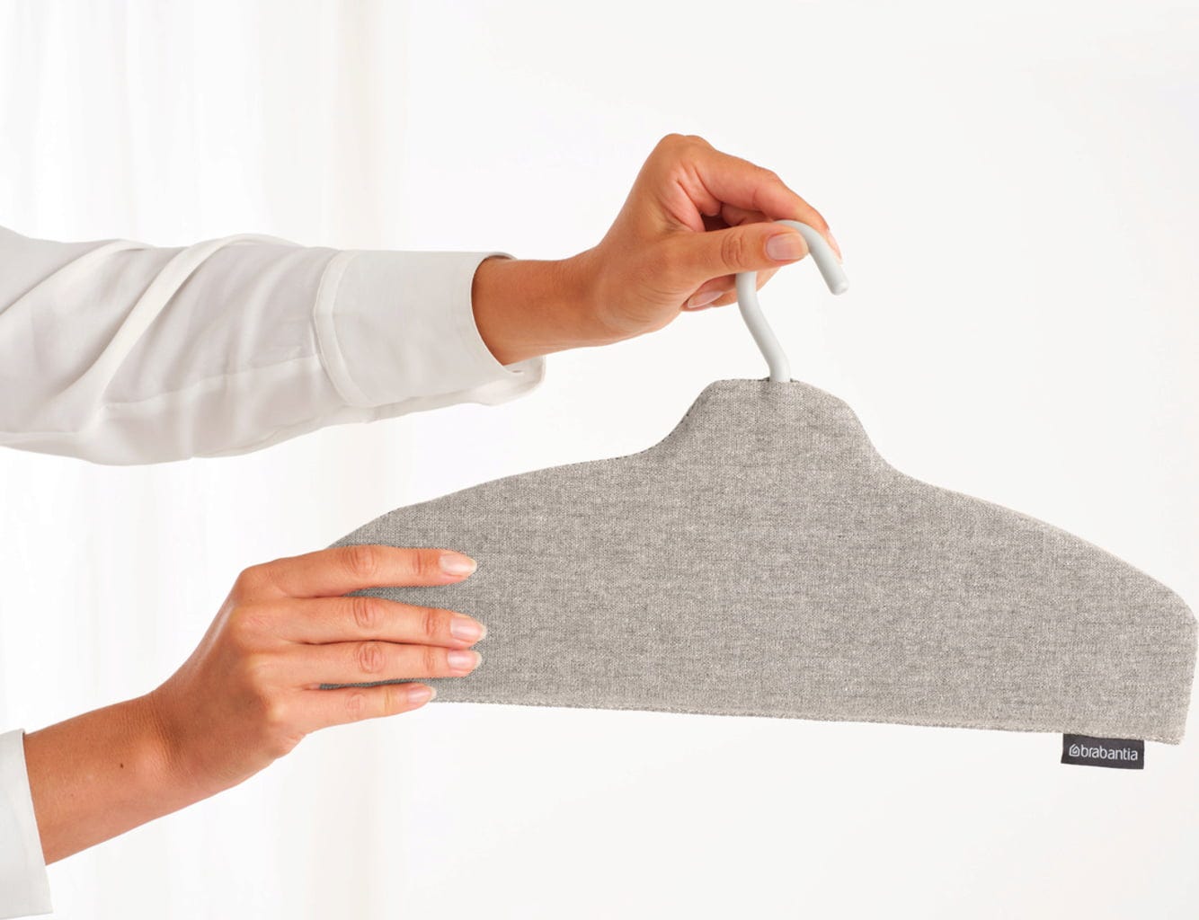 Ha a vasalás helyett a gőzölést részesíti előnyben, a Brabantia gőzöléshez kifejlesztett, kifinomult vállfája tökéletes választás az Ön számára. Sokoldalúan használható, és akár egyszerű vállfaként is használhatja ruhásszekrényében.