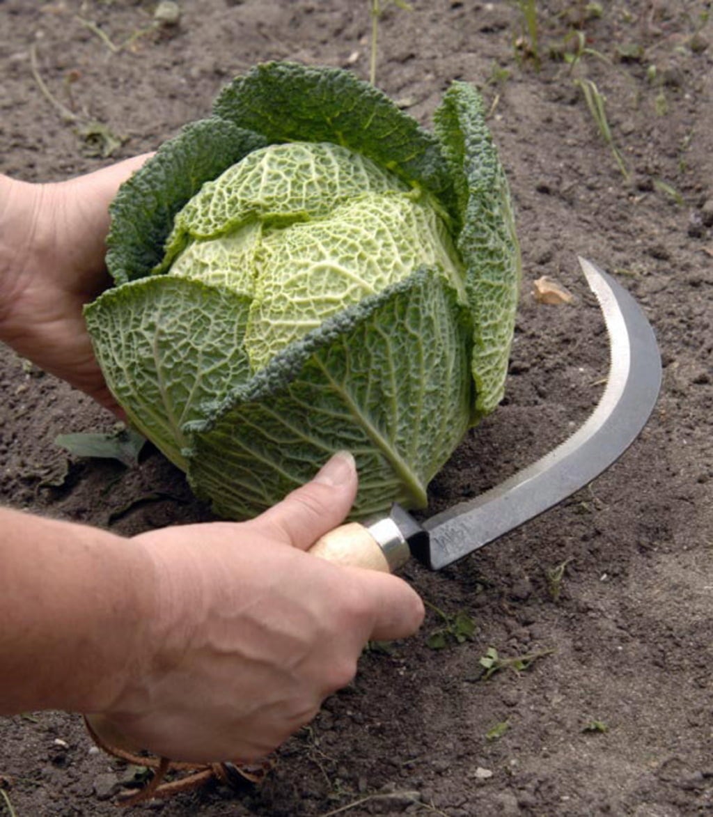 Ez a kés ideális a vastag szárú zöldségek, például káposzta, brokkoli és karfiol betakarítására. Az ívelt penge fogazott fogai tiszta vágást biztosítanak.