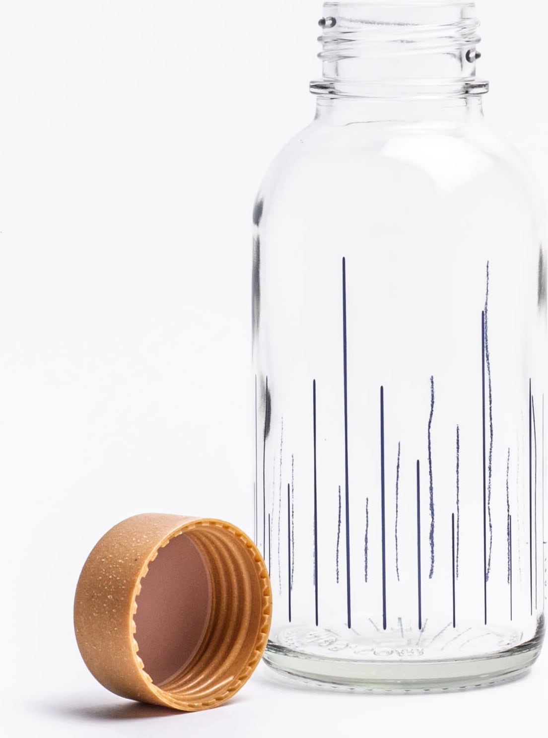 A robusztus üvegből készült, finom vonalvezetésű, 0,4 literes palack ideálisan elfér a kézi- és az iskolatáskában, valamint az óvodai hátizsákban.