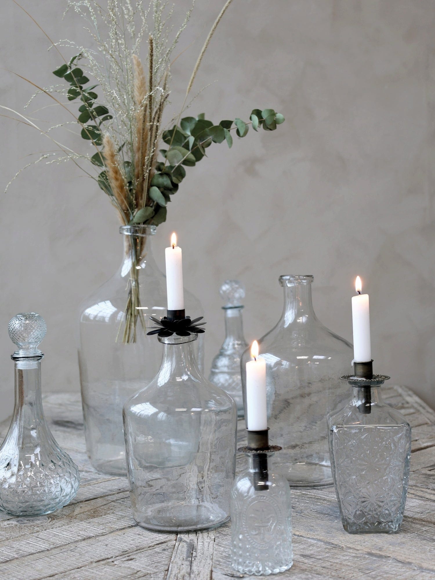 Ez az eredeti gyertyatartó antik dizájnjával és masszív fémszerkezetével igazi különlegesség, amely minden helyiséget feldob. A gyertyatartót úgy tervezték, hogy tökéletesen illeszkedjen a borosüvegekhez és más típusú palackokhoz is. Csodálatos választás a hangulatos háttérvilágítás biztosításához.