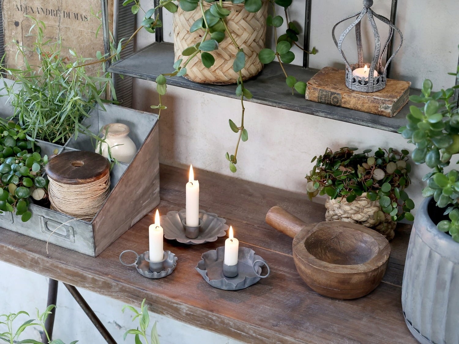 Ez az esztétikus gyertyatartó nosztalgikus bájt áraszt, és hangulatos megvilágítást biztosít otthonában. A robusztus vas szerkezet antik cink bevonattal nem hagy kívánnivalót maga után. A gyönyörűen formázott tartó nem csak szemet gyönyörködtető, megbízhatóan felfogja a lefolyó gyertyaviaszt is.
