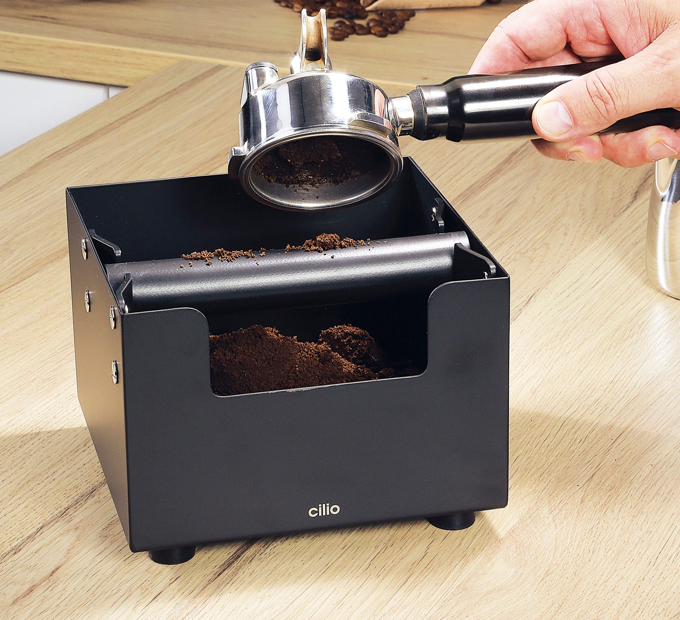 A cilio BARISTA zacckiütő doboz tiszta és professzionális megoldás minden kávés sarokba. Ahelyett, hogy a szűrőtartó kart a szemetesbe vagy a mosogatóba ürítené, ez a „Knock Box” biztonságos helyet kínál a forró kávézaccnak. A kiütőrúd gumi felülettel van ellátva, amely hatékonyan elnyeli az ütéseket. Így a kiütés jelentősen halkabb lesz, a szűrőtartó kar érzékeny élei pedig védve maradnak a karcolásoktól és horpadásoktól.