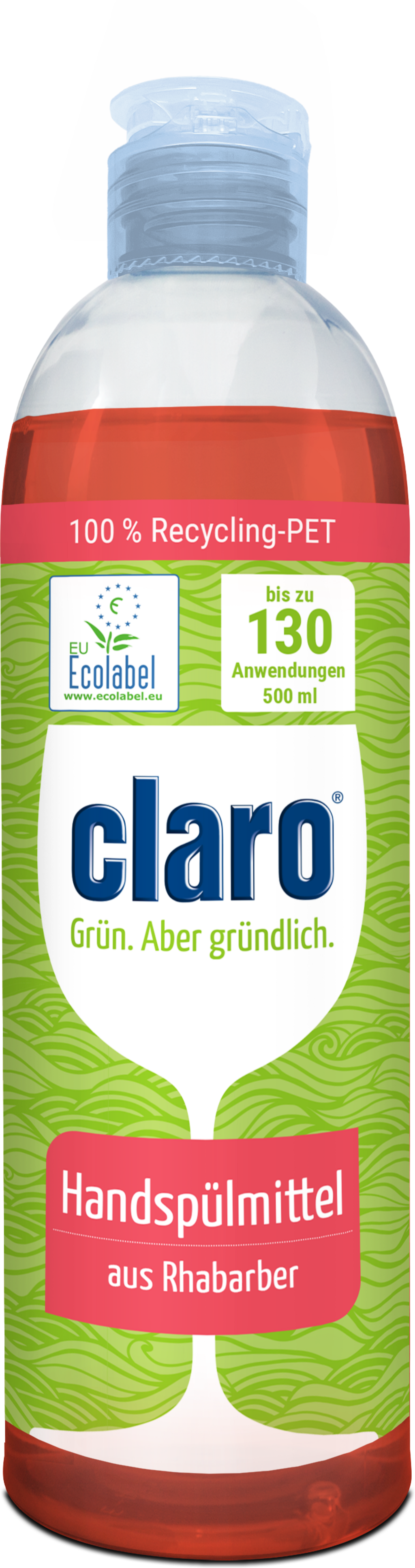 A claro ezen kézi mosogatószere kellemes rebarbara illatot áraszt, és magas szintű hatékonyságának köszönhetően könnyedén eltávolítja még az erős szennyeződéseket és a lerakódásokat is. Az összetevők vegánok és biológiailag lebomlóak, míg a csomagolás 100%-ban újrahasznosított PET-ből készült. Mivel a készítmény nem tartalmaz allergén tartósítószereket, nem csak a környezetet kíméli, hanem bőrét is.