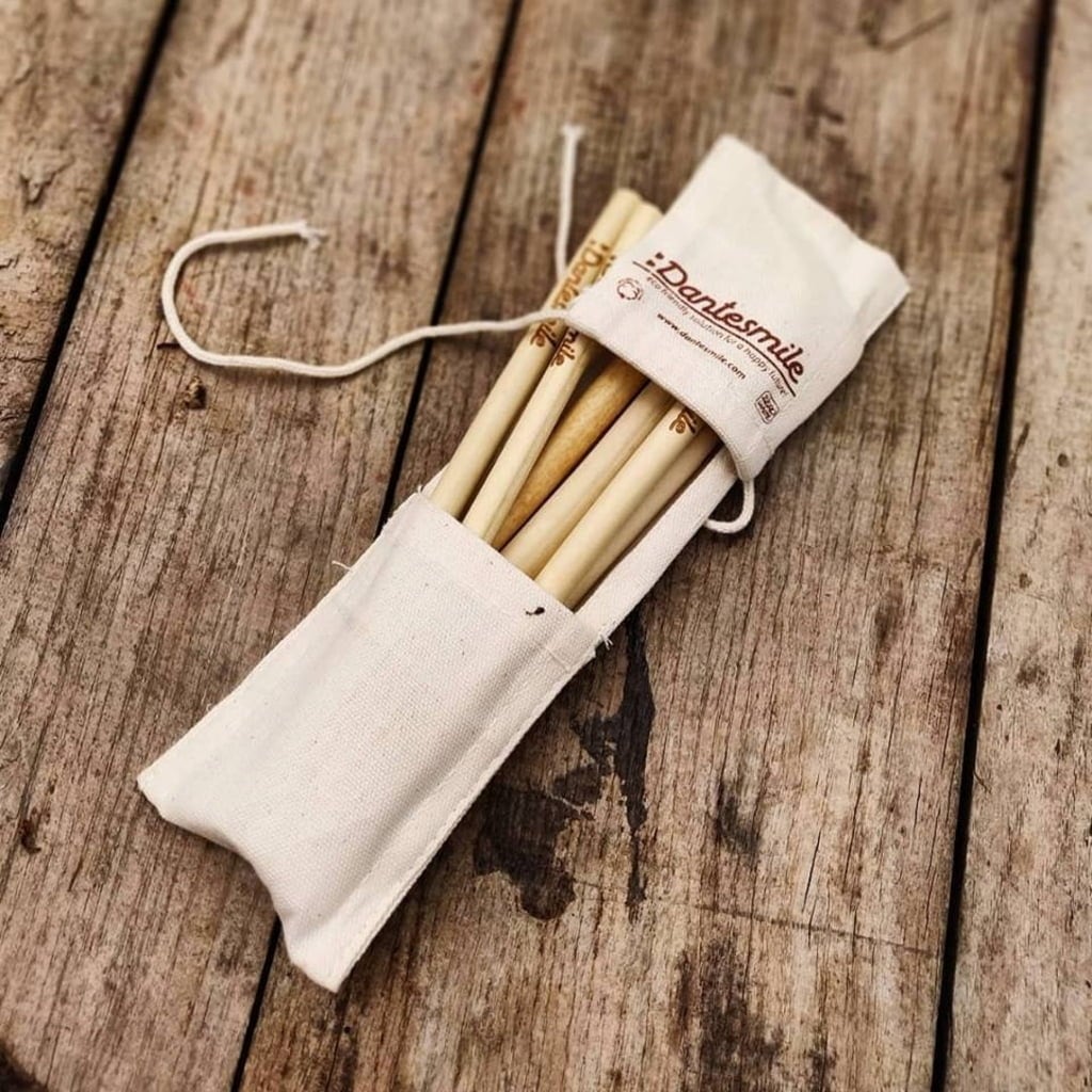 A készlet tartalma: 4 bambusz szívószál, 1 tisztító kefe, 1 bio pamut tároló tasak