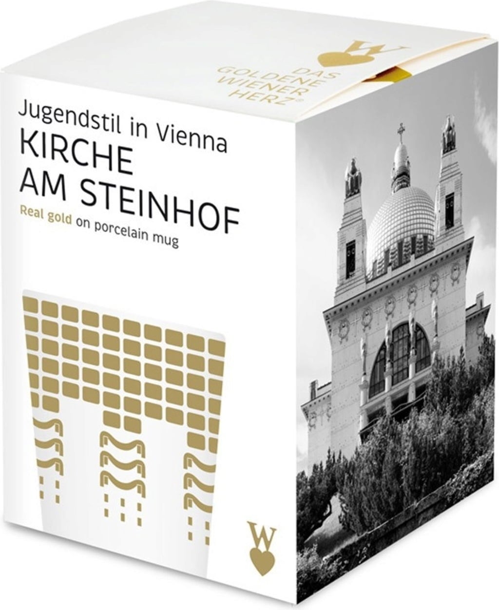 A „Jugendstil in Vienna” sorozatból származó „Kirche am Steinhof” porcelán bögre a kiemelkedő bécsi szecessziós épületek esztétikáját tükrözi. A finom porcelánt valódi aranyból készült minta díszíti.