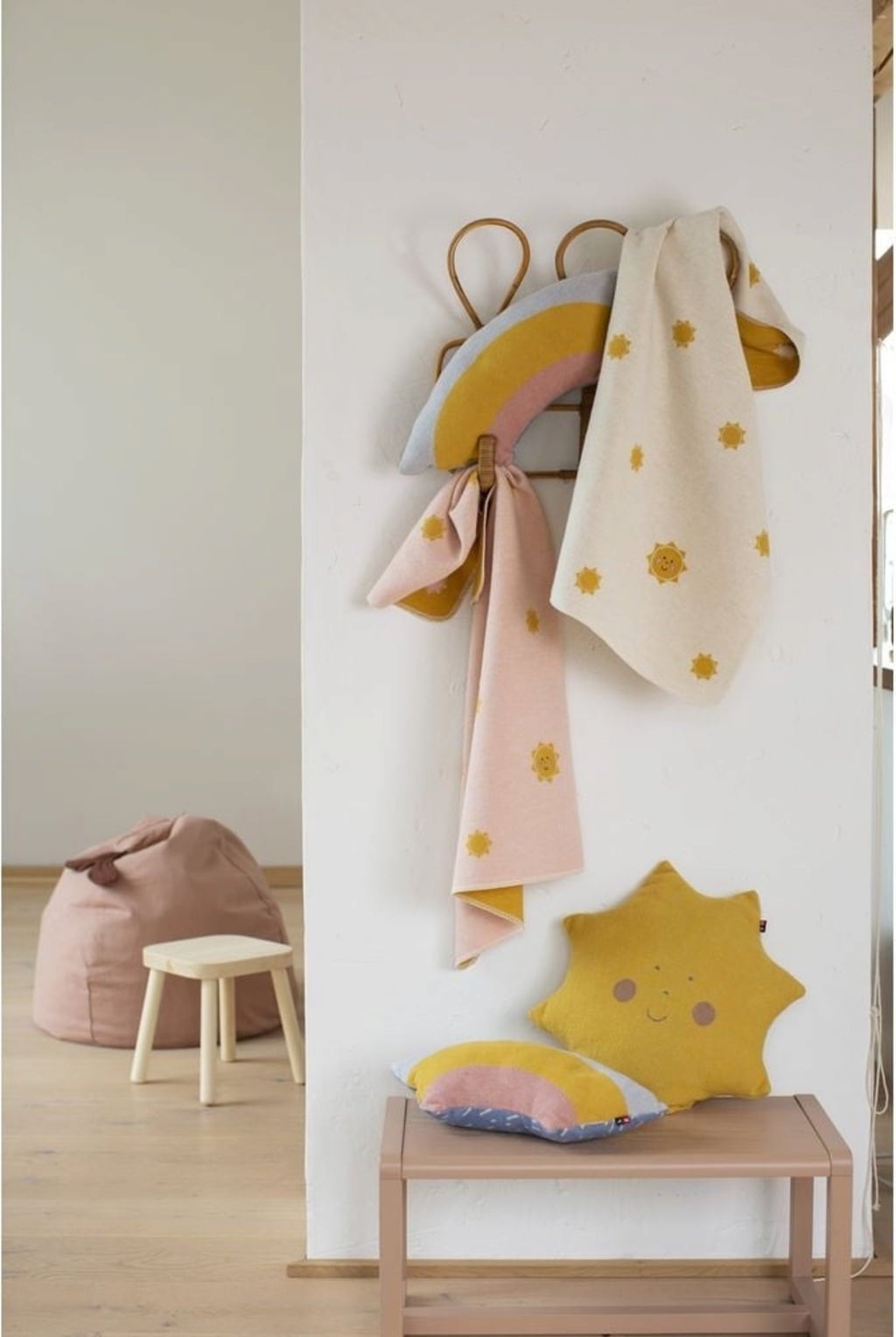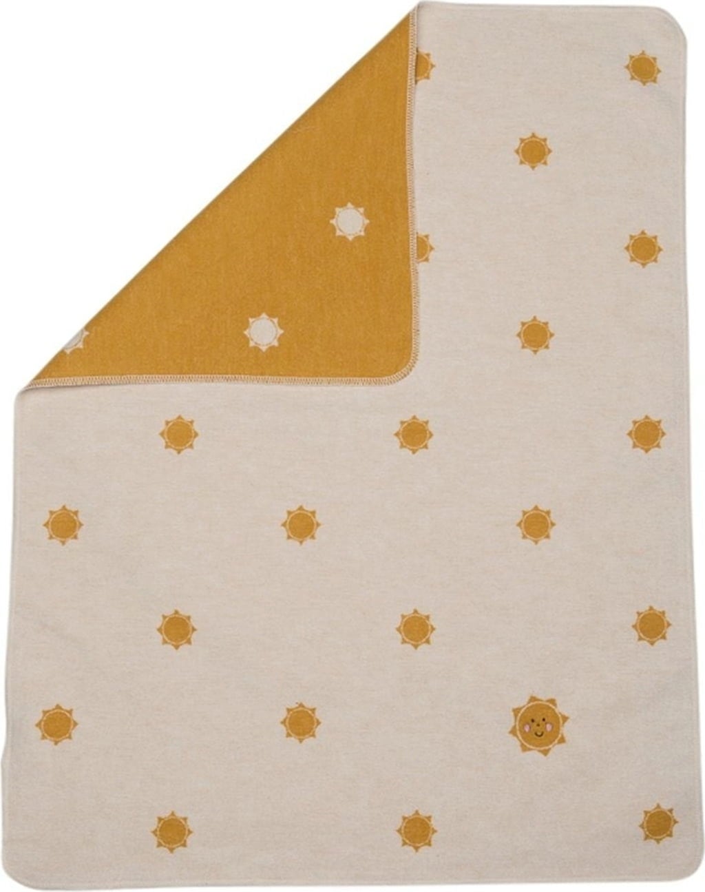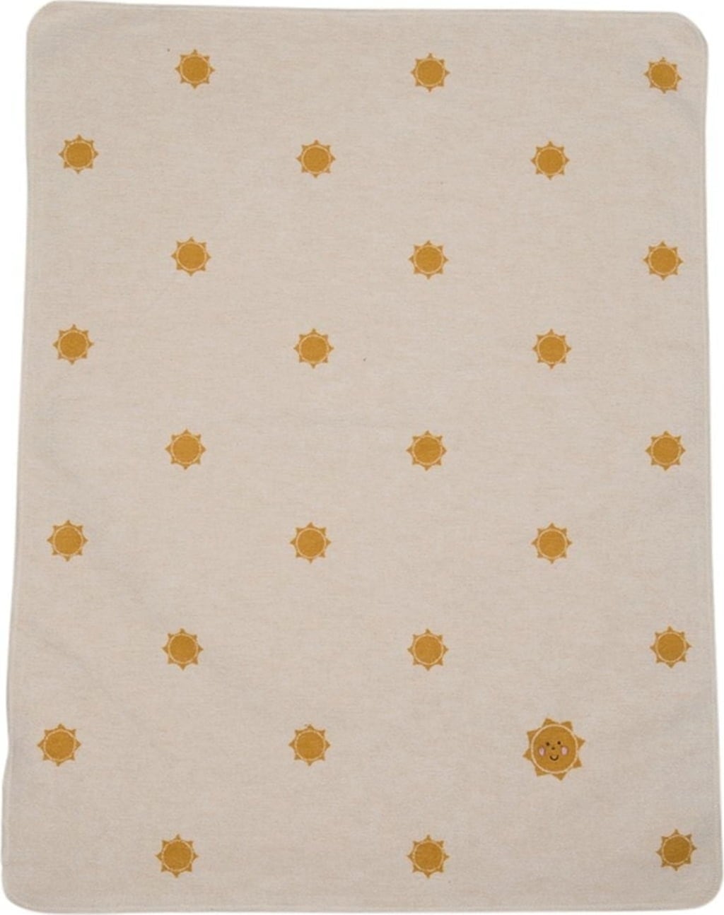 A kellemesen könnyű baba- és gyerektakaró a kicsik imádnivaló társa játék és álmodozása közben. Magas, 95%-os pamuttartalmának köszönhetően egész évben kellemes meleget biztosít, és a babaévek után is abszolút kedvenc lesz. Különösen aranyos: A vidáman mosolygó nap a takaró alsó szélén.