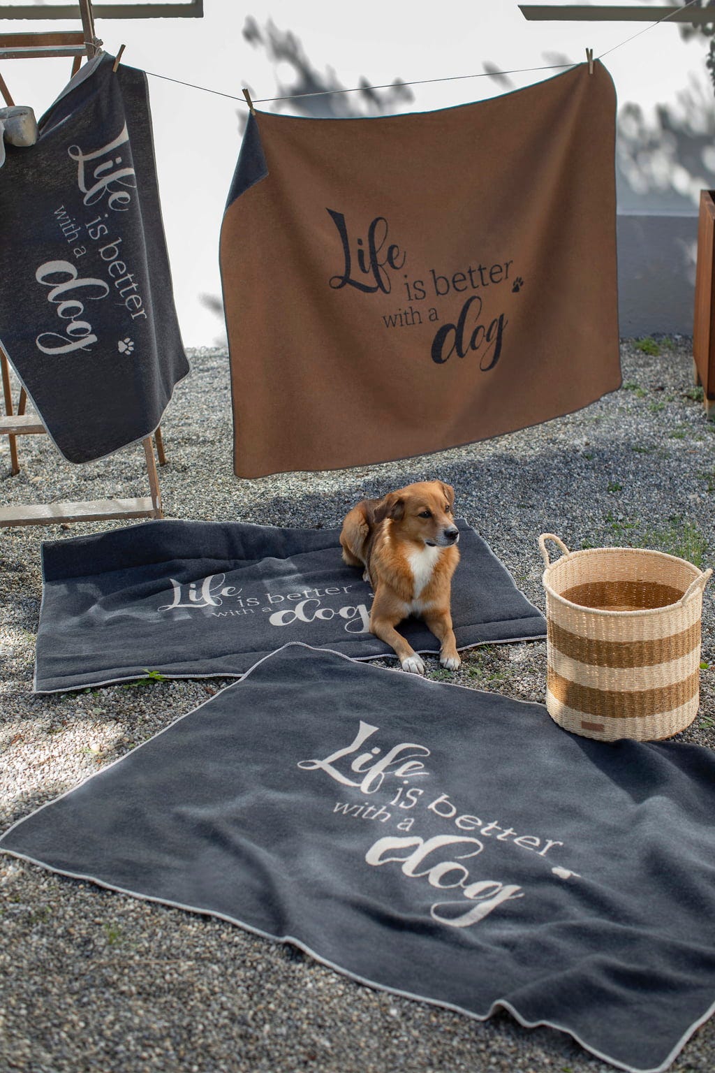 David Fussenegger "Life is better with a dog" háziállat takaró, nagy, antracit