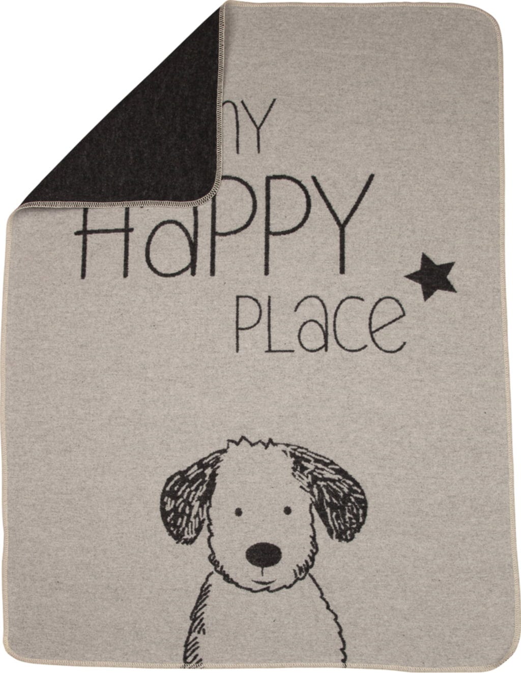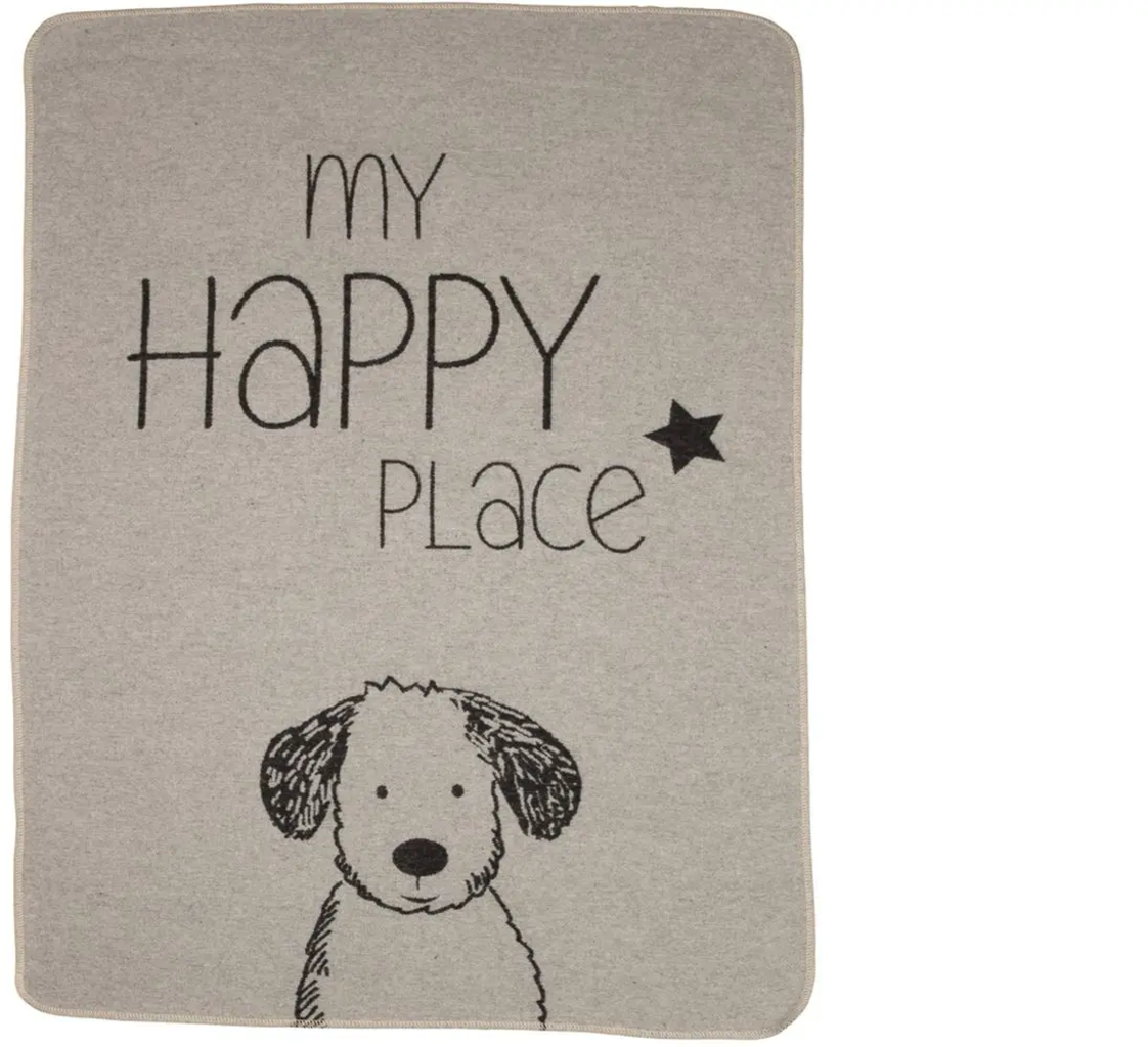 A my happy place kisállat pléd kutyák számára 85%-ban újrahasznosított pamutból készült. A kiváló minőségnek köszönhetően a pokróc gond nélkül mosható 40°C-on.