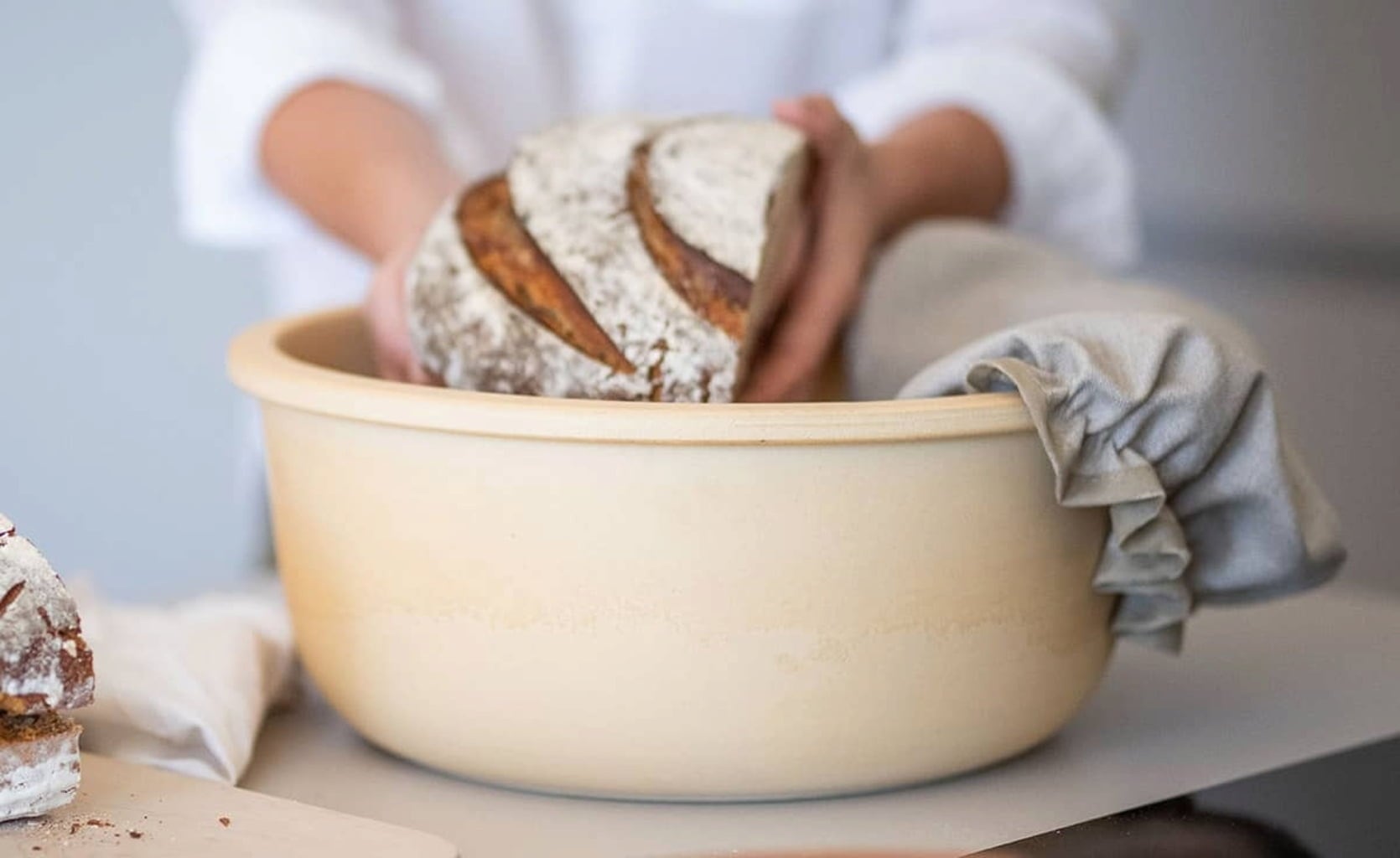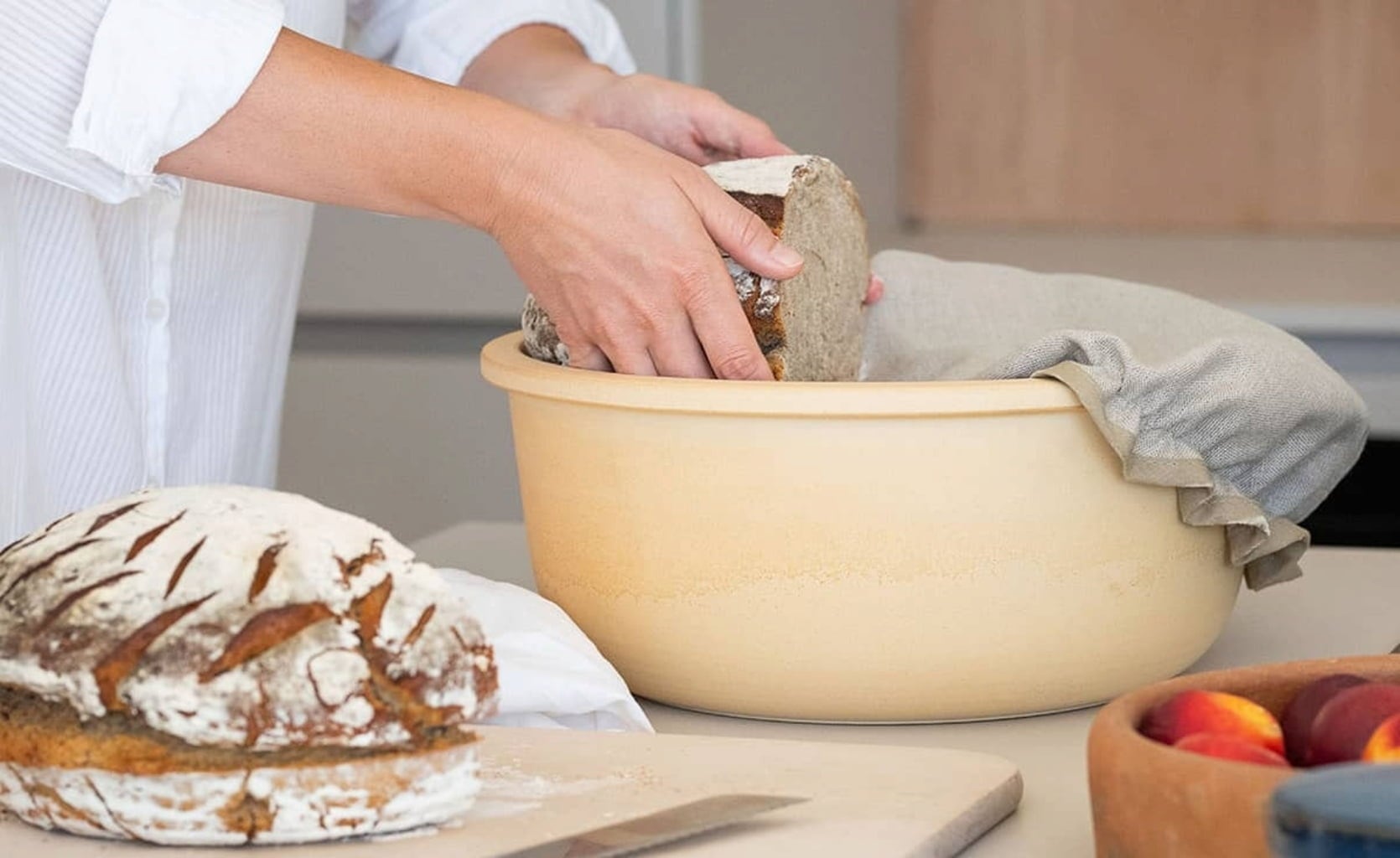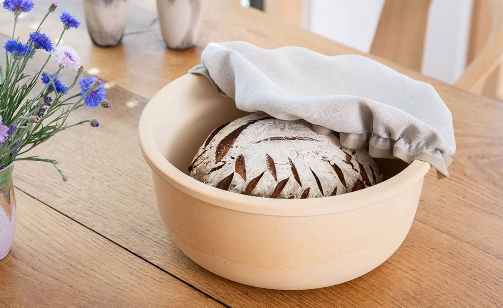 Ez a természetes CeraNatur® kerámiából készült kenyértartó ideális megoldás a kenyér tárolásához, mivel a légáteresztő kerámia és az antibakteriális vászon kombinációjának köszönhetően a kenyér sokáig friss és ízletes marad. Mindkét anyag lehetővé teszi a levegő keringését, valamint nedvességszabályozó hatással is bír, ezáltal optimális klímát biztosítanak a kenyér tárolására. Sokáig élvezheti otthon sütött kenyerét.