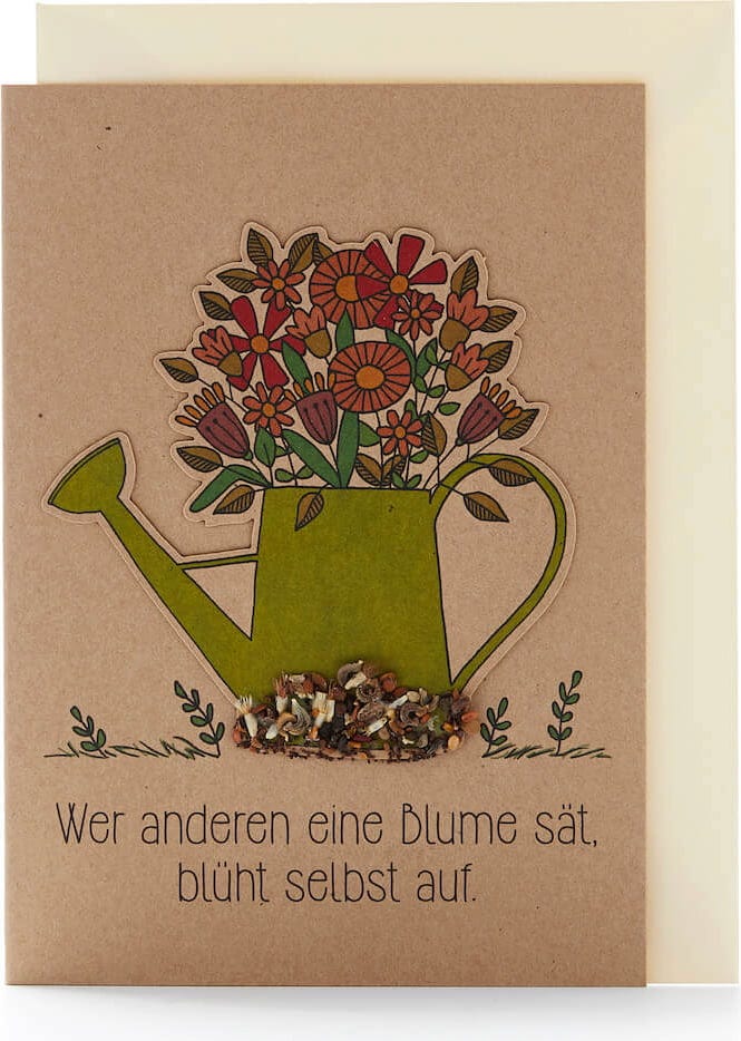 Távolítsa el a mellékelt magpapírt az üdvözlőkártyáról, helyezze növénytartóba vagy szabadföldbe és enyhén fedje le földdel. Ügyeljen arra, hogy a csírázásig melegen és nedvesen tartsa. Néhány nap múlva megjelennek az első hajtások. A rendszeres öntözés és a napsütés hatására a vadvirágok hamarosan gyönyörű virágokat hoznak.