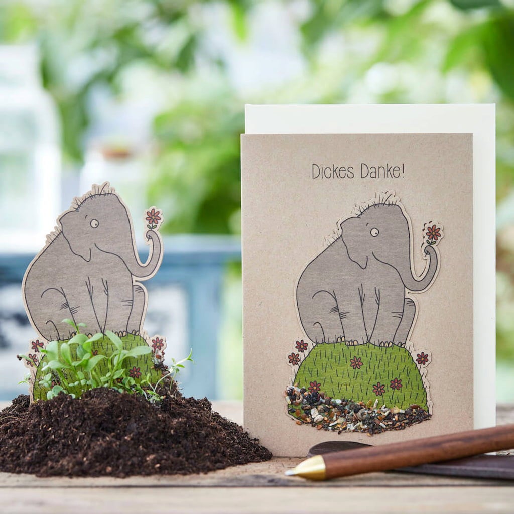 Ha óriási köszönetet szeretne mondani, ez az elefánt pont megfelelő. Nemcsak pompás virággal a csomagtartójában érkezik, hanem a vadvirág magok színes keverékével is. A nagyszerű benne: Kivehető és földbe is szúrható, így rövid időn belül kikelnek az első vadvirág hajtások.