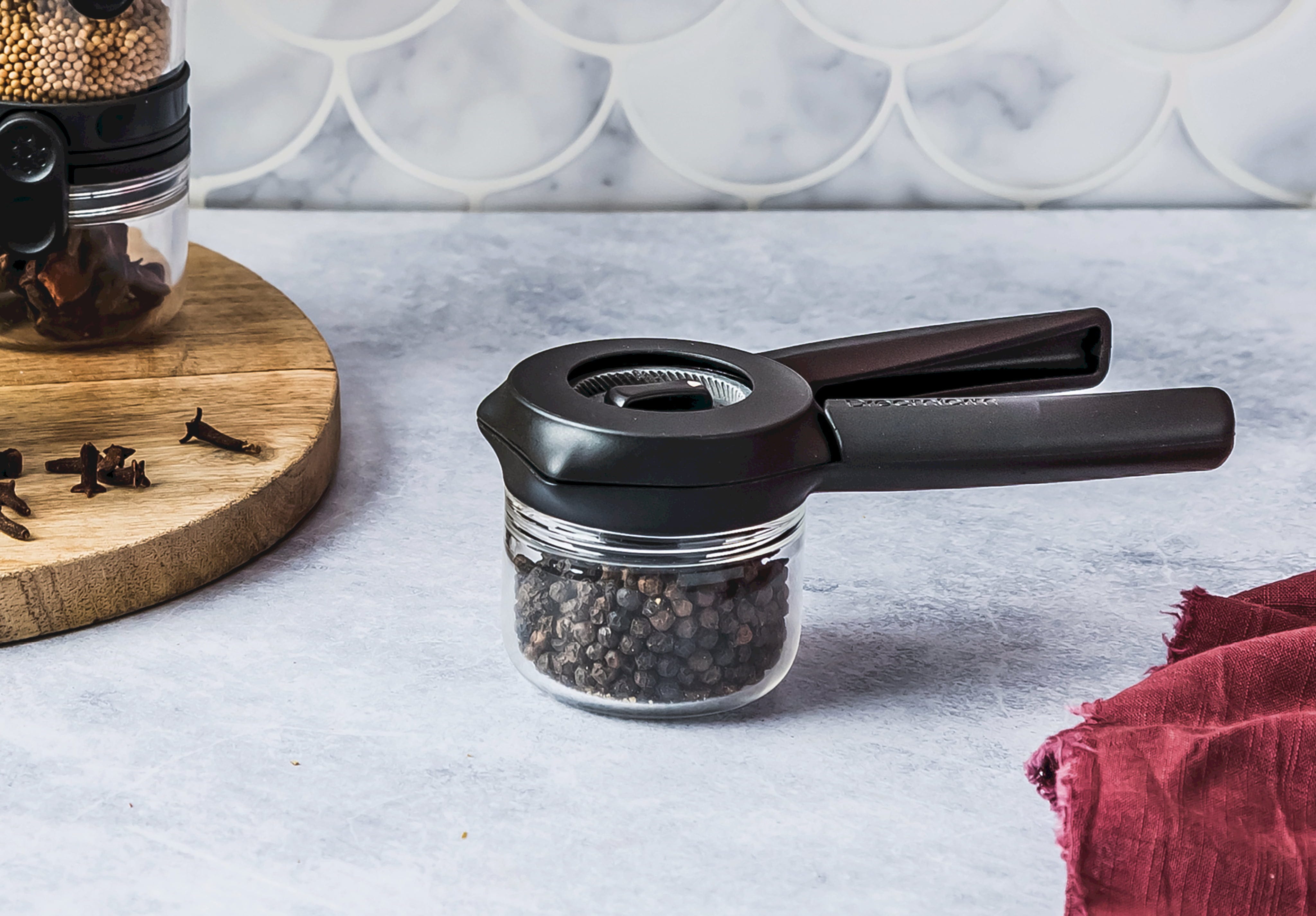 A széles nyílással és lapos aljjal rendelkező, BPA-mentes, mosogatógépben tisztítható üvegtartálynak köszönhetően az utántöltés gyerekjáték. Legyen szó az étkezések közötti gyors ízesítésről vagy nagyobb mennyiségről az asztalnál – ez a robusztus műanyagból készült eszköz mindig tökéletes eredményt nyújt.
