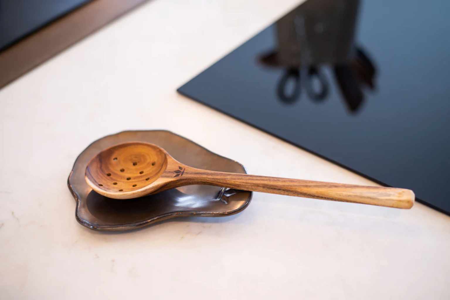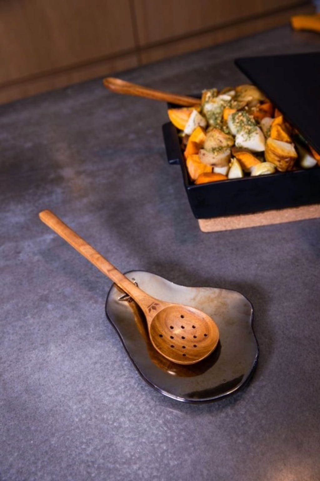 Egyedülállóan dekoratív és praktikus egyszerre: Az organikus formájú, kiváló minőségű kerámiából készült tál alkalmas stílusos kanáltartóként főzés közben, és dekoratív előételes tálként is használható apró finomságok tálalásához.