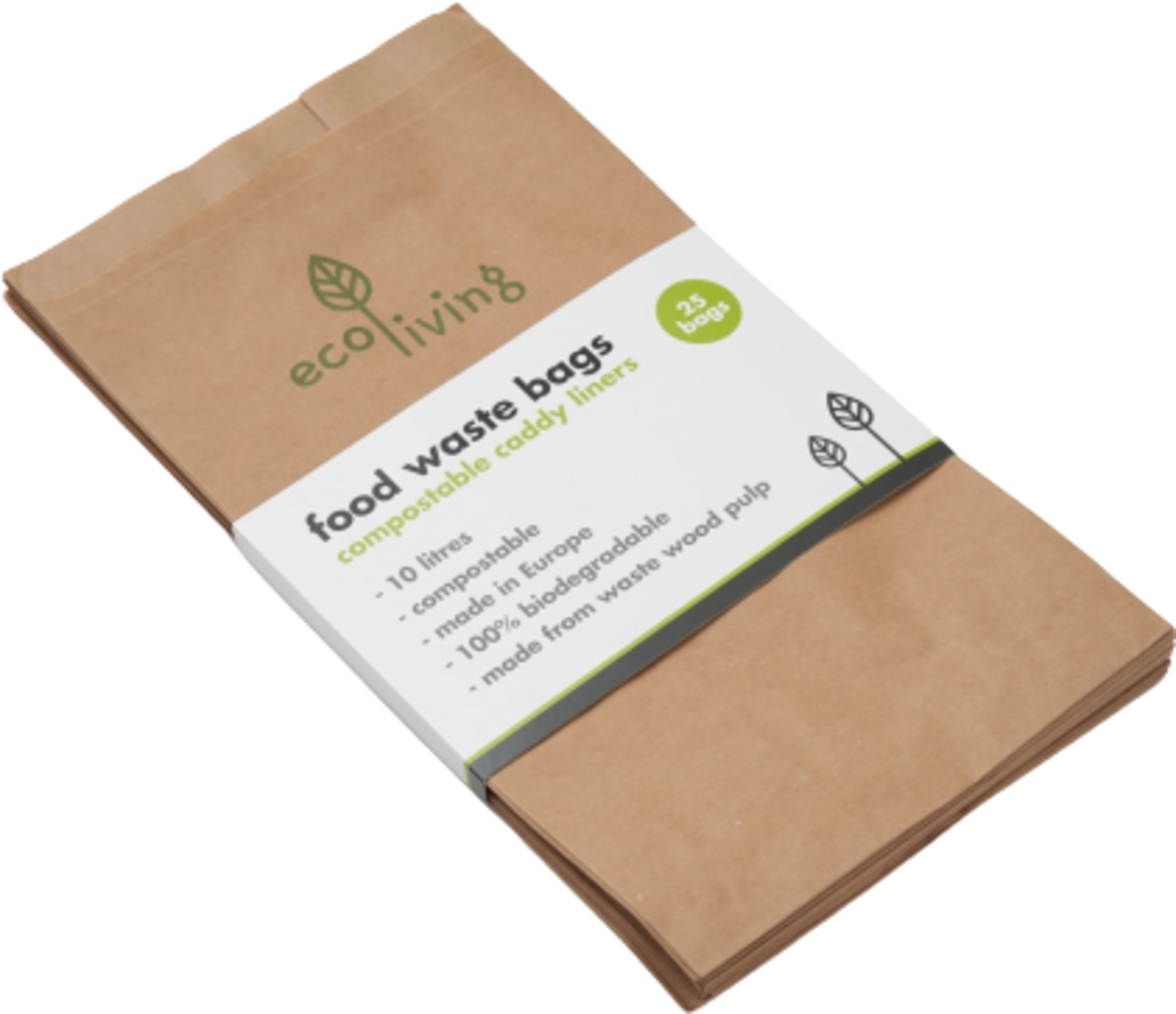 ecoLiving Komposztálható szemeteszsák biohulladékhoz, 25 darab