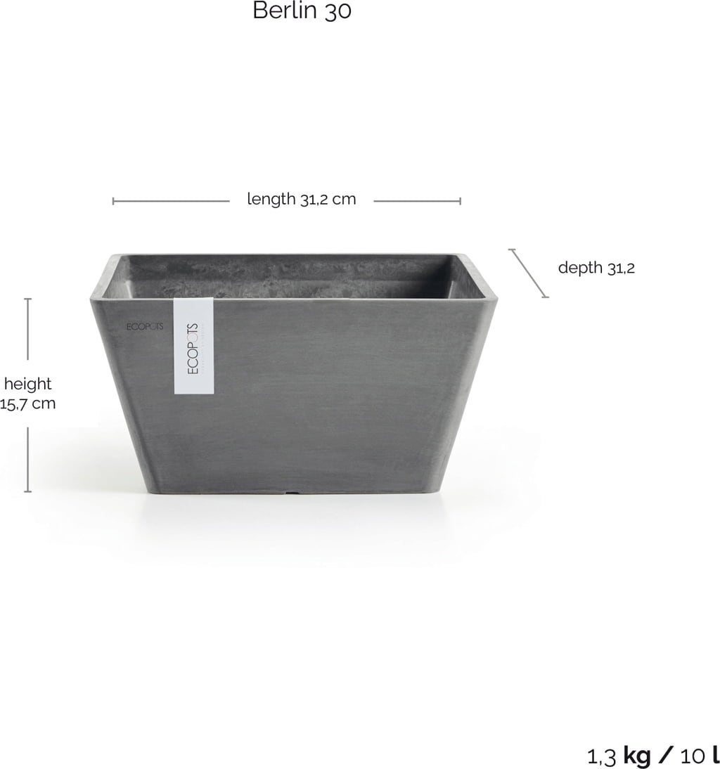 Ecopots Berlin kaspó - szürke, M 15,5 x Sz 31 x H 31 cm (10 liter)