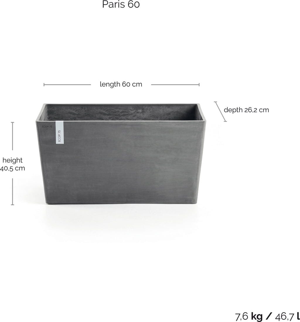 Ecopots Paris növénytartó láda - szürke, H 60 x Mé 26 x Ma 40 cm (46,7 liter)