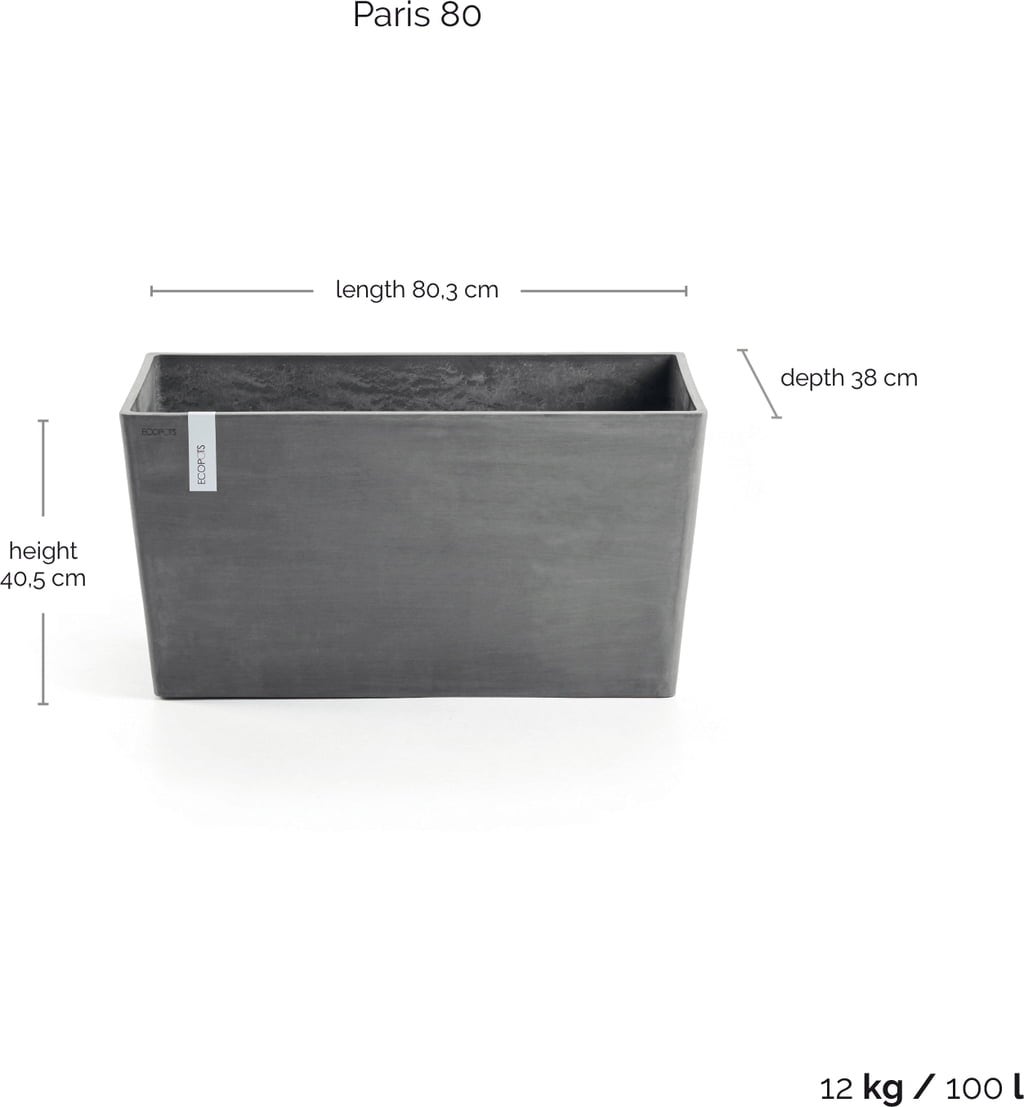 Ecopots Paris növénytartó láda - szürke, H 80 x Mé 42 x Ma 38 cm (100 liter)