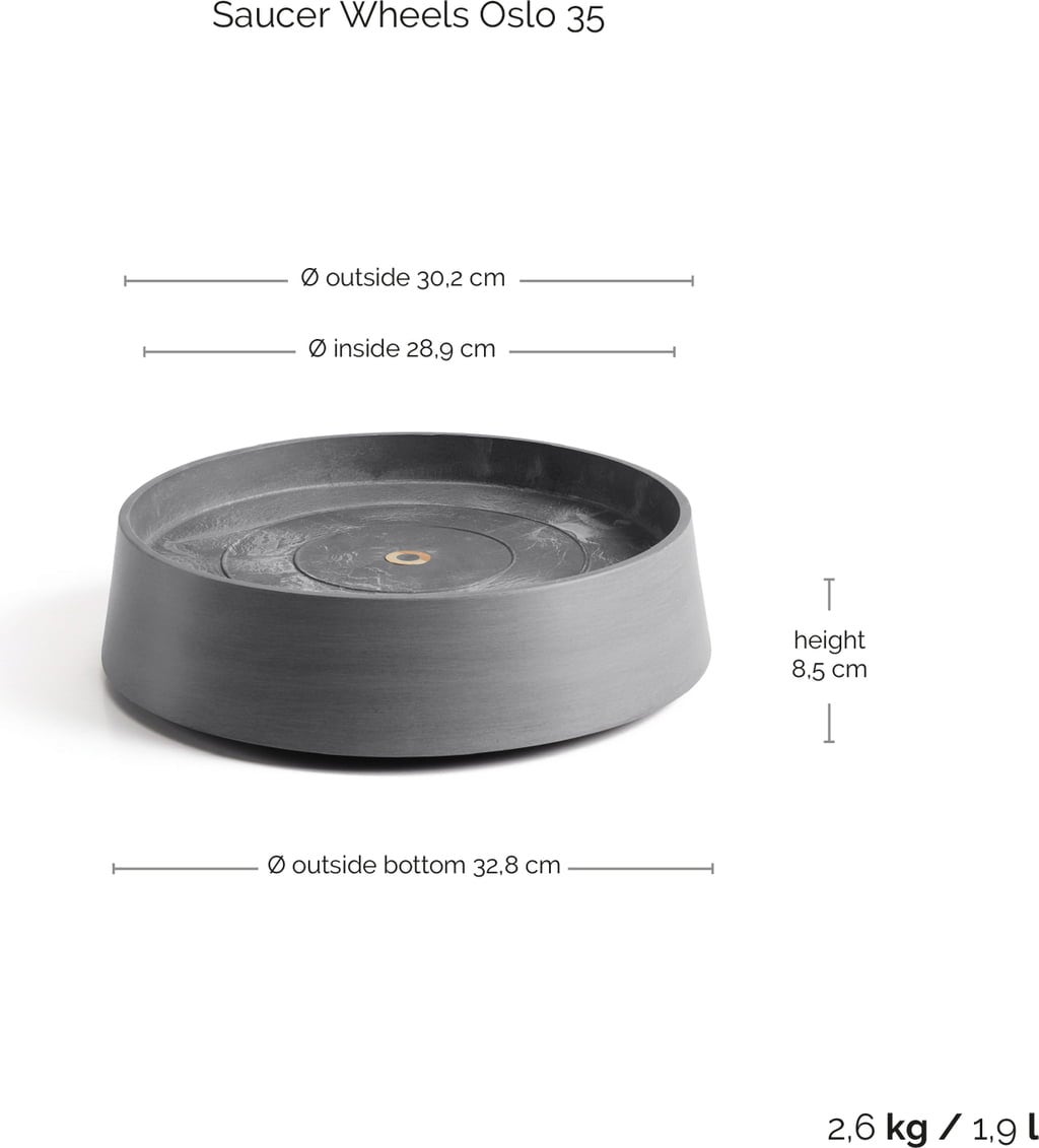 Ecopots Wheels Oslo alátét - szürke, ∅ 28,90, magasság 8,5 cm